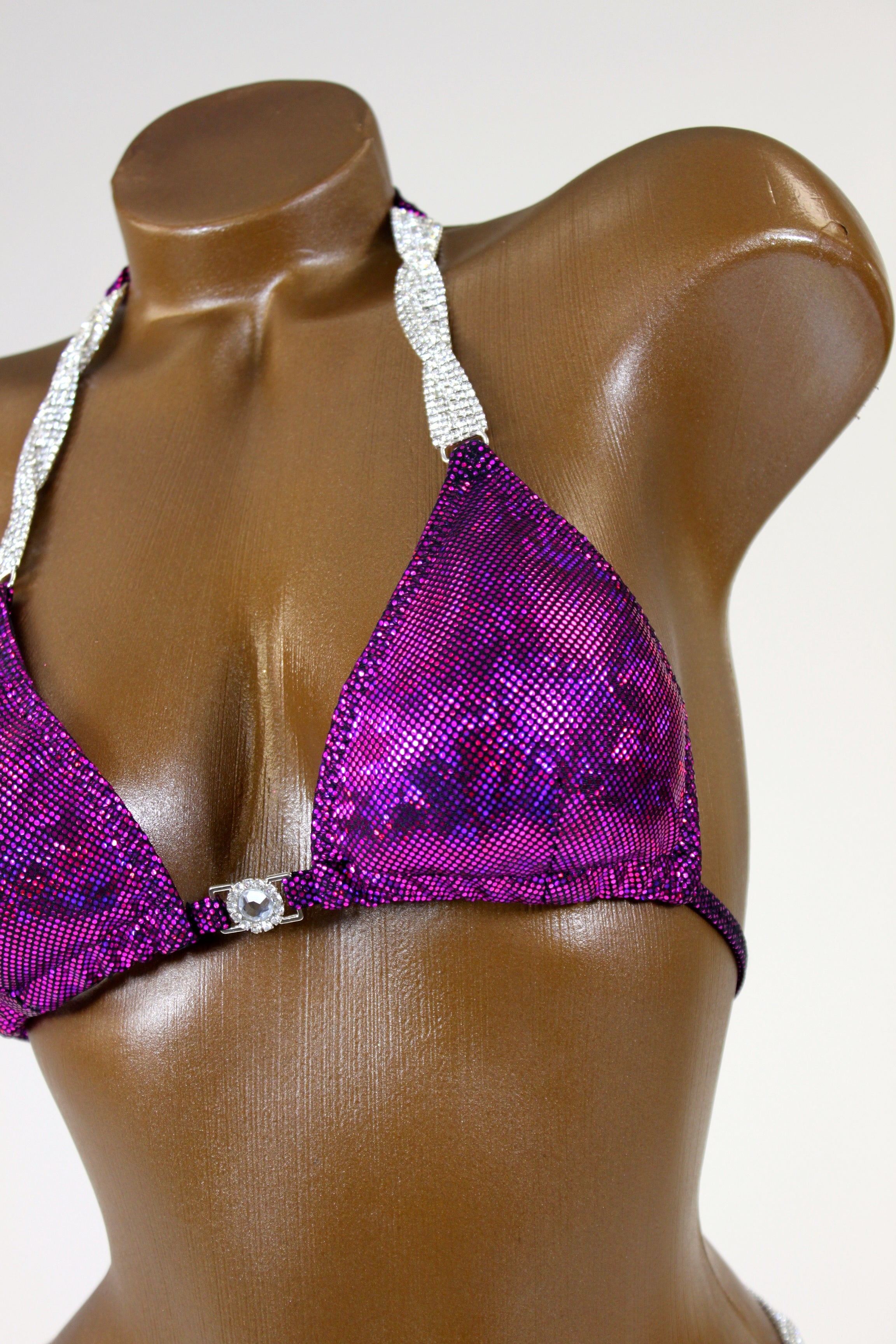 - Fabric: Deep fuchsia hologram spandex
