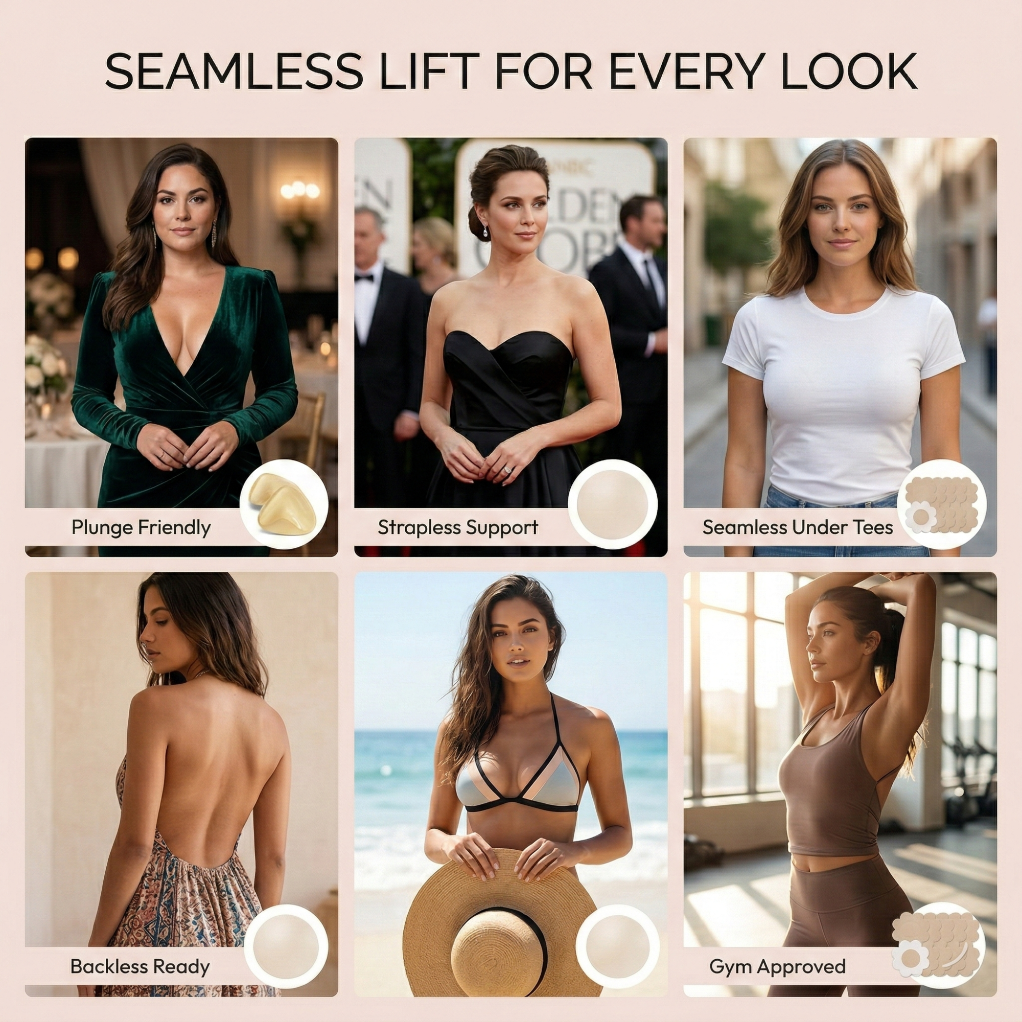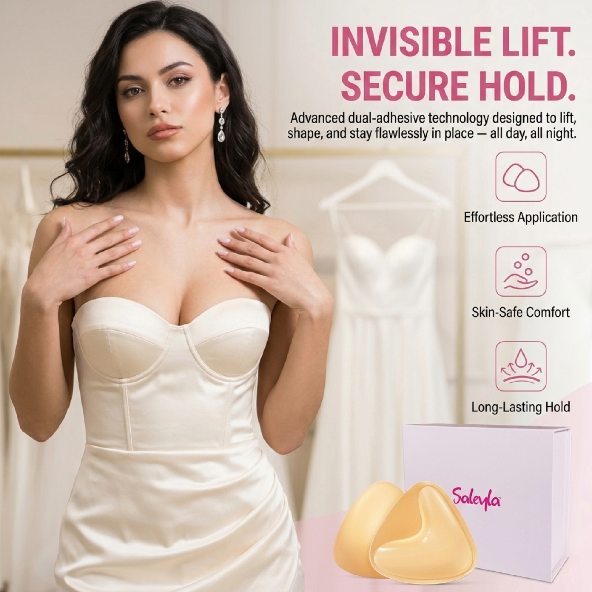 The Saleyla Sticky Bra Kit gives you natural lift, smooth coverage, and invisible support for outfits where a traditional bra won't work. Perfect for backless dresses, competition suits, strapless tops, evening gowns, and special occasions.