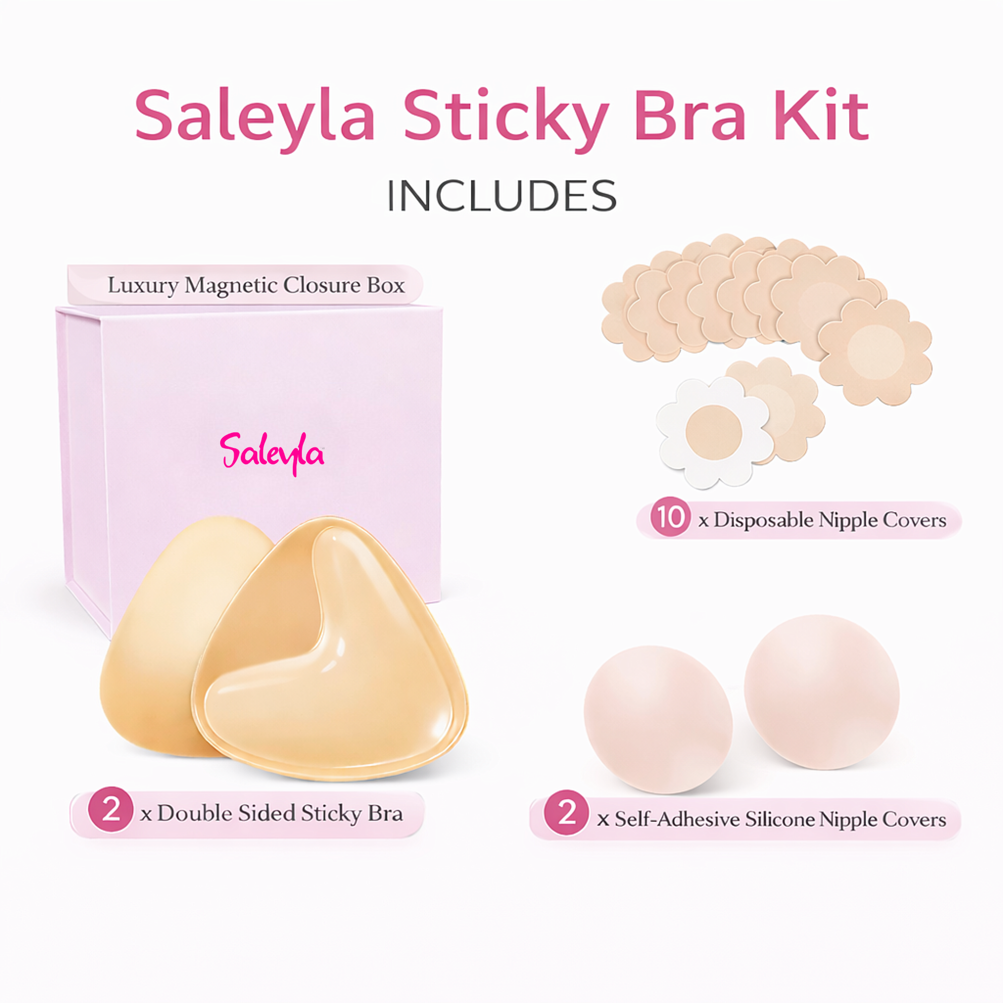 Saleyla Sticky Bra Kit – Silicone Adhesive Bra & Nipple Cover Set