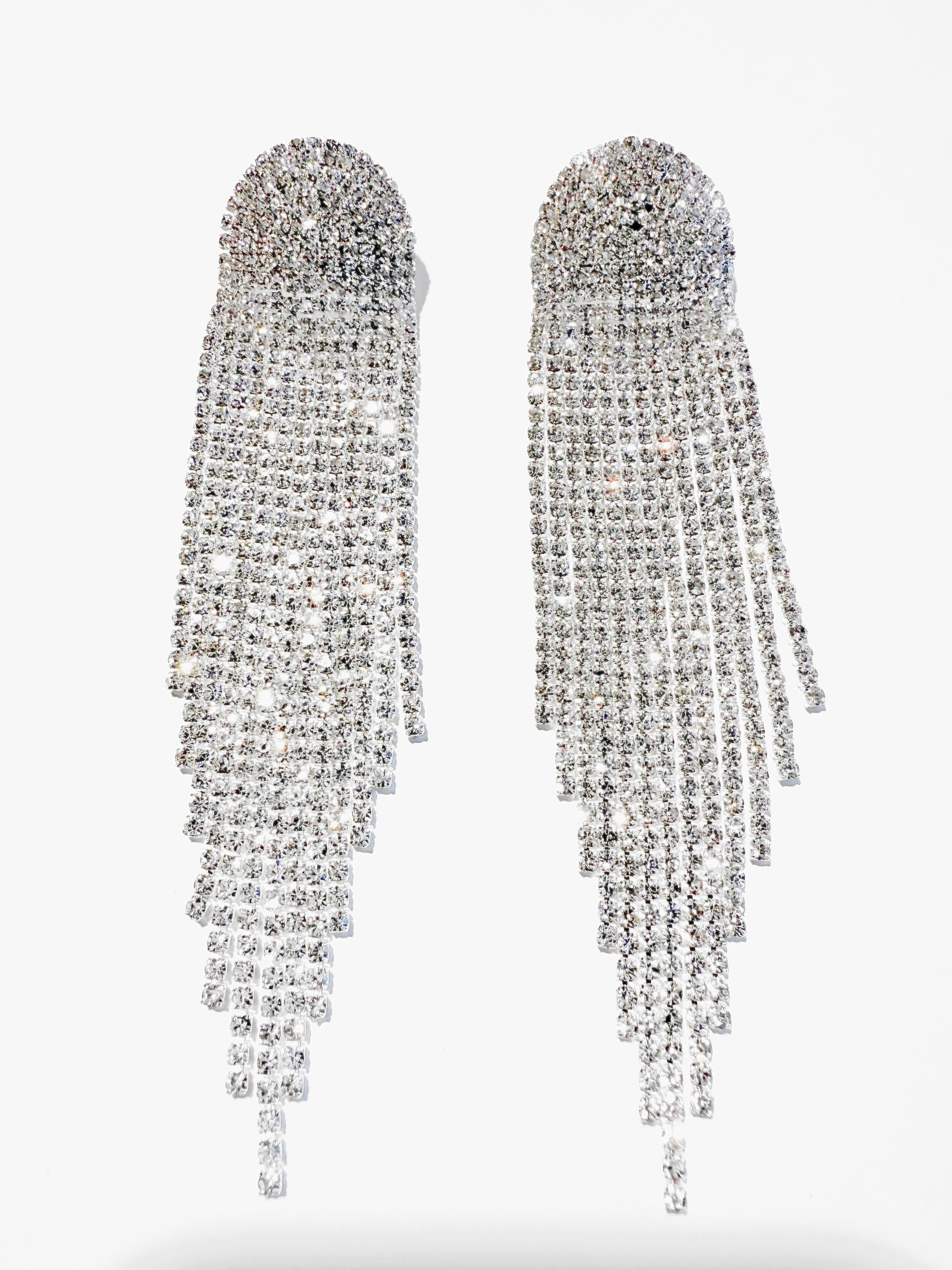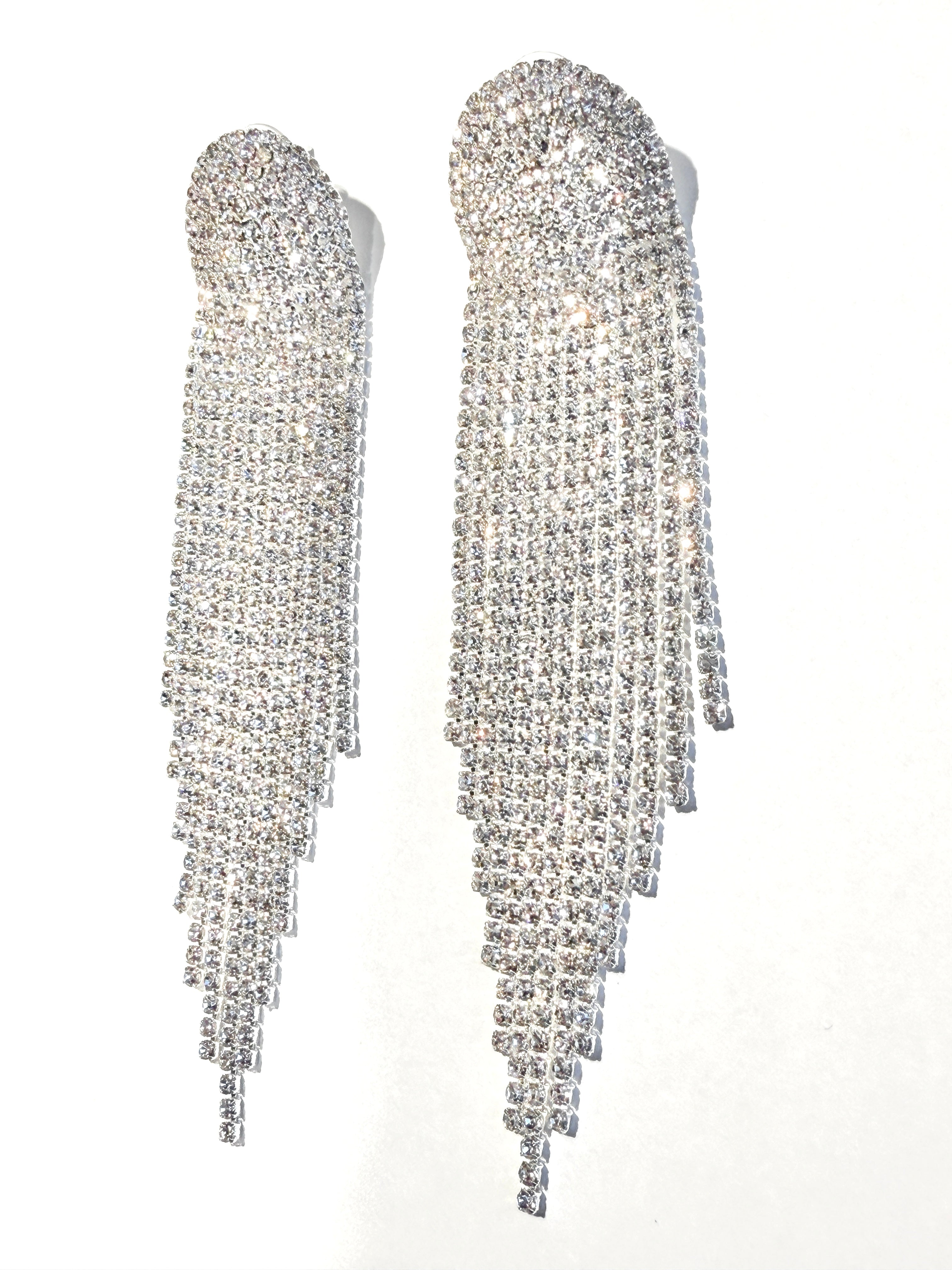 Make a statement on stage with these stunning rhinestone drape earrings! Designed for fitness competitions, these long, cascading crystal earrings add the perfect touch of sparkle to complete your competition look. Lightweight yet dazzling, they move beautifully under stage lights, ensuring you shine with every pose. Ideal for NPC, IFBB, WBFF, and other bodybuilding events. 💎✨