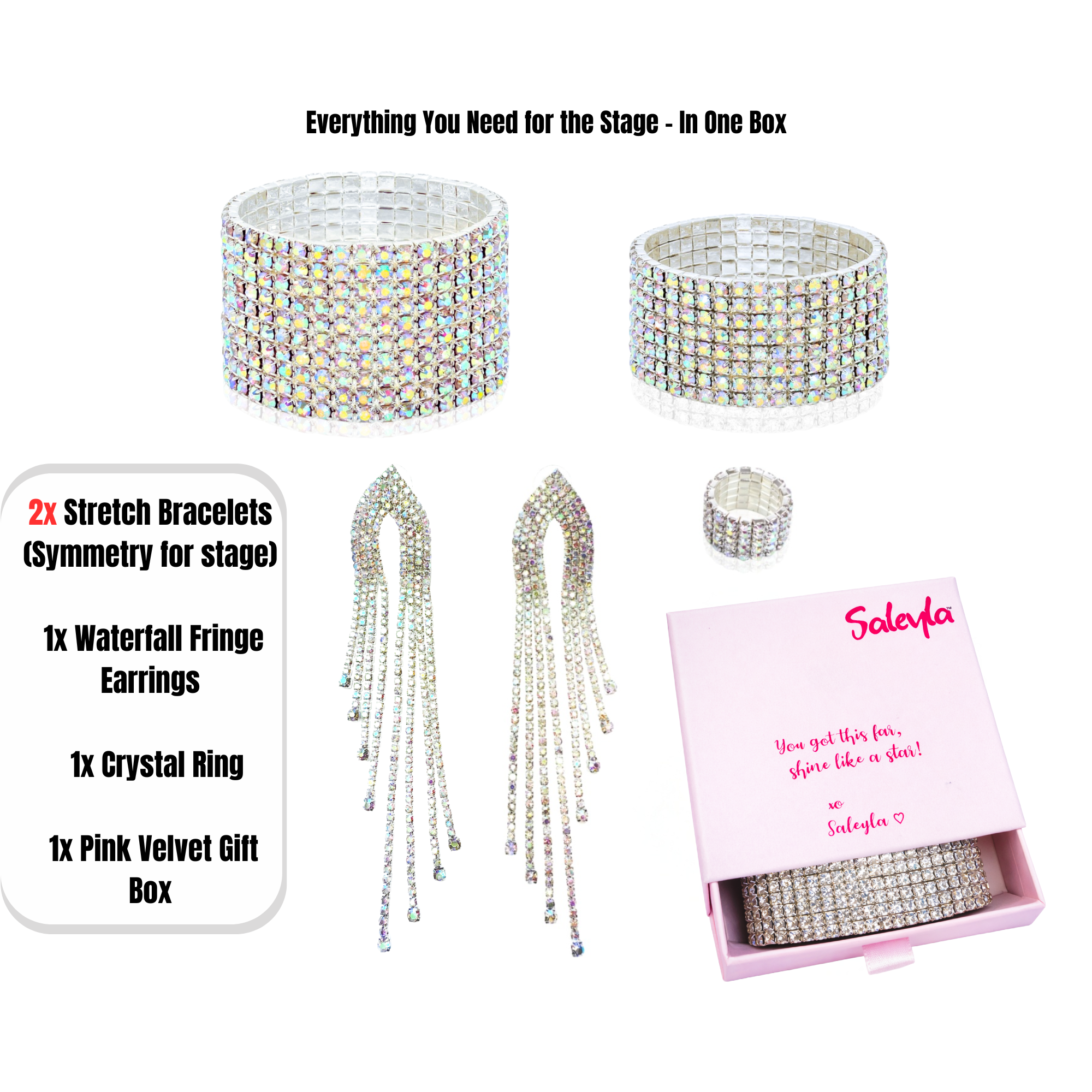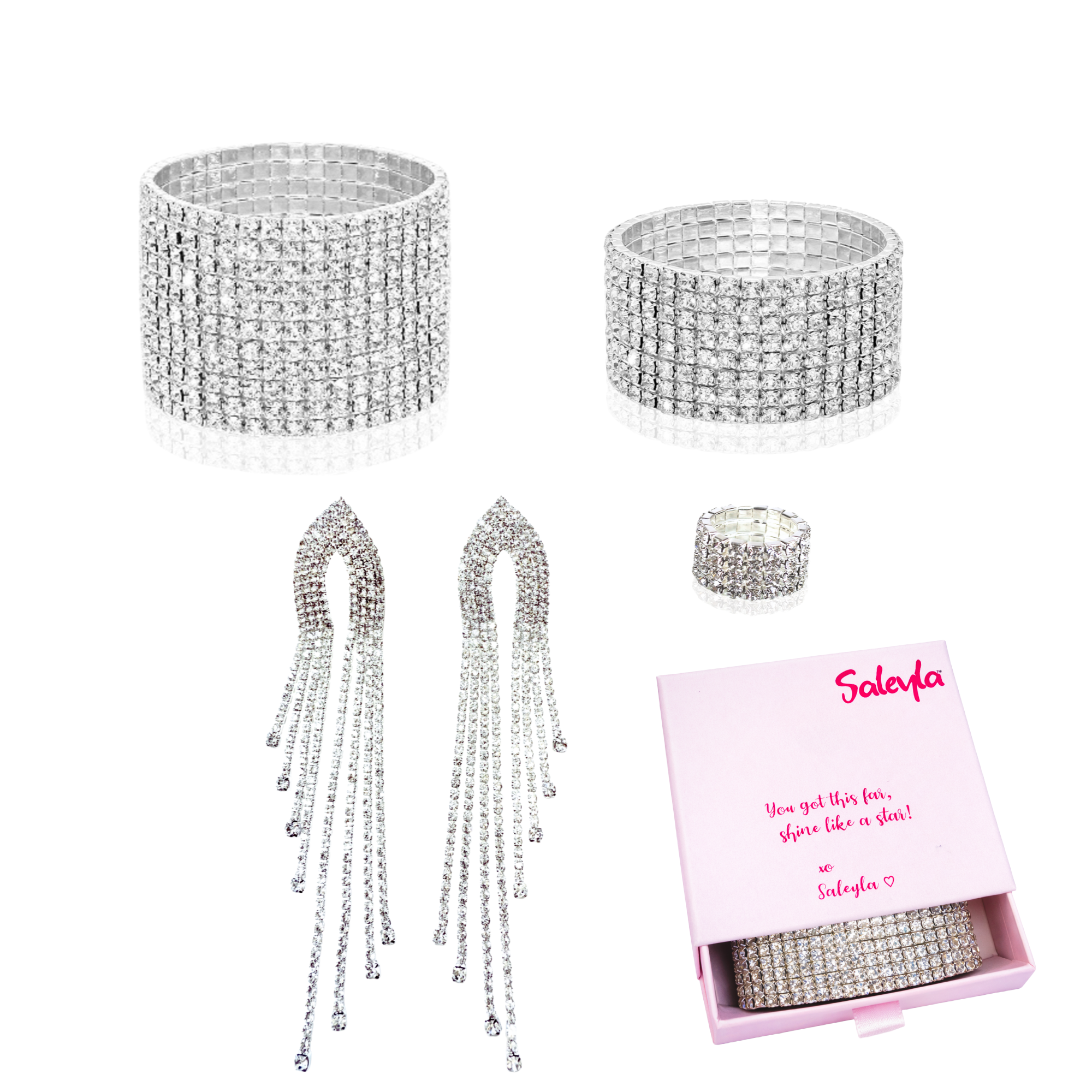 The right competition jewelry completes your entire stage presentation. At Saleyla, we curate jewelry styles that enhance your physique, match your suit color, and create the polished, glamorous look judges expect from top-level bikini, wellness, and figure athletes. Each piece is selected for maximum sparkle under bright stage lighting while remaining lightweight and comfortable for long show days.
