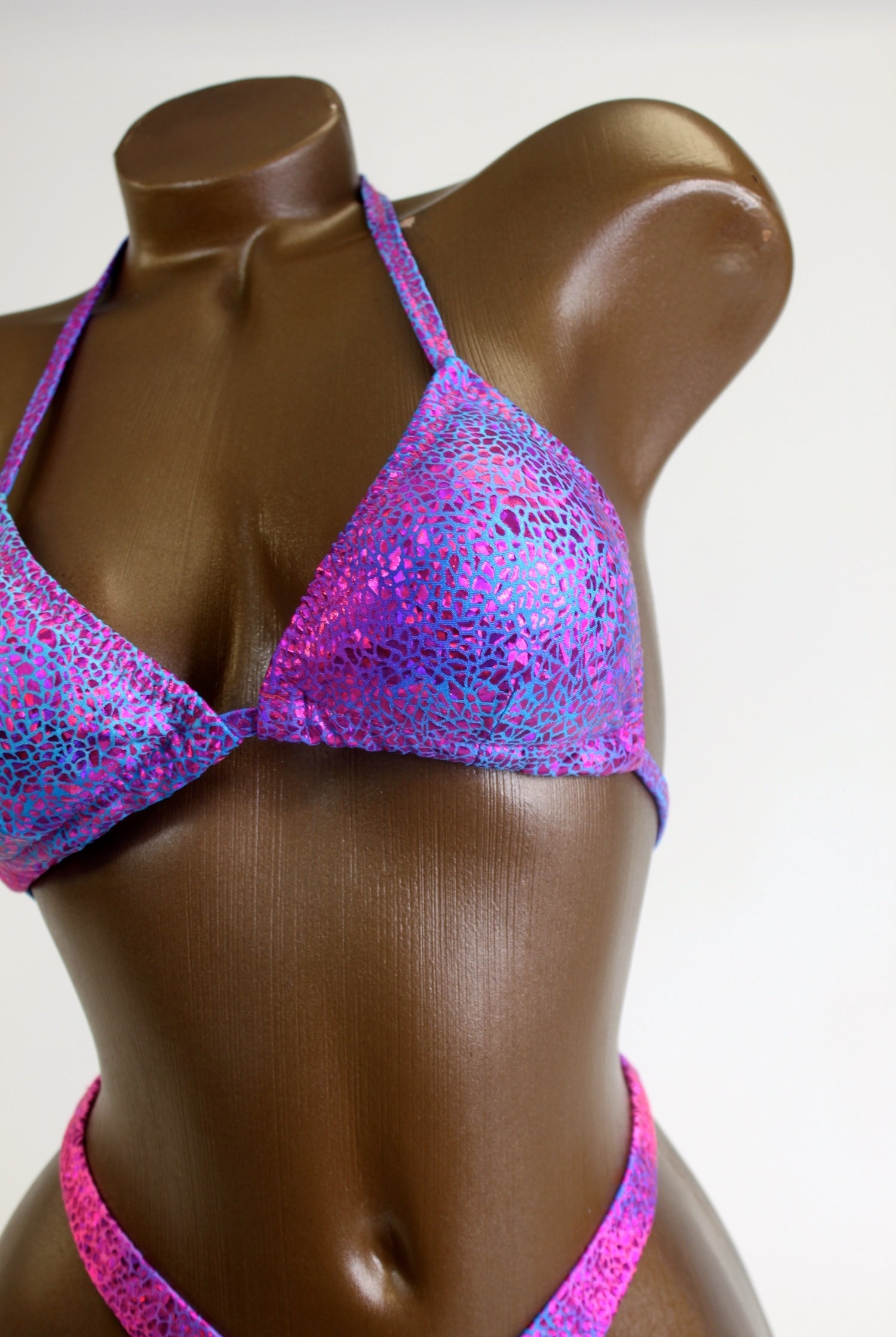Posing suits are an essential part of competition prep. Designed to mimic the fit and proportions of your stage suit, Saleyla posing suits allow you to practice your walk, transitions, quarter turns, and glute engagement with accurate coverage and tension. Each posing suit is handcrafted in Las Vegas using durable, colorfast fabrics that withstand daily training, tanning, and repeated washing during prep.