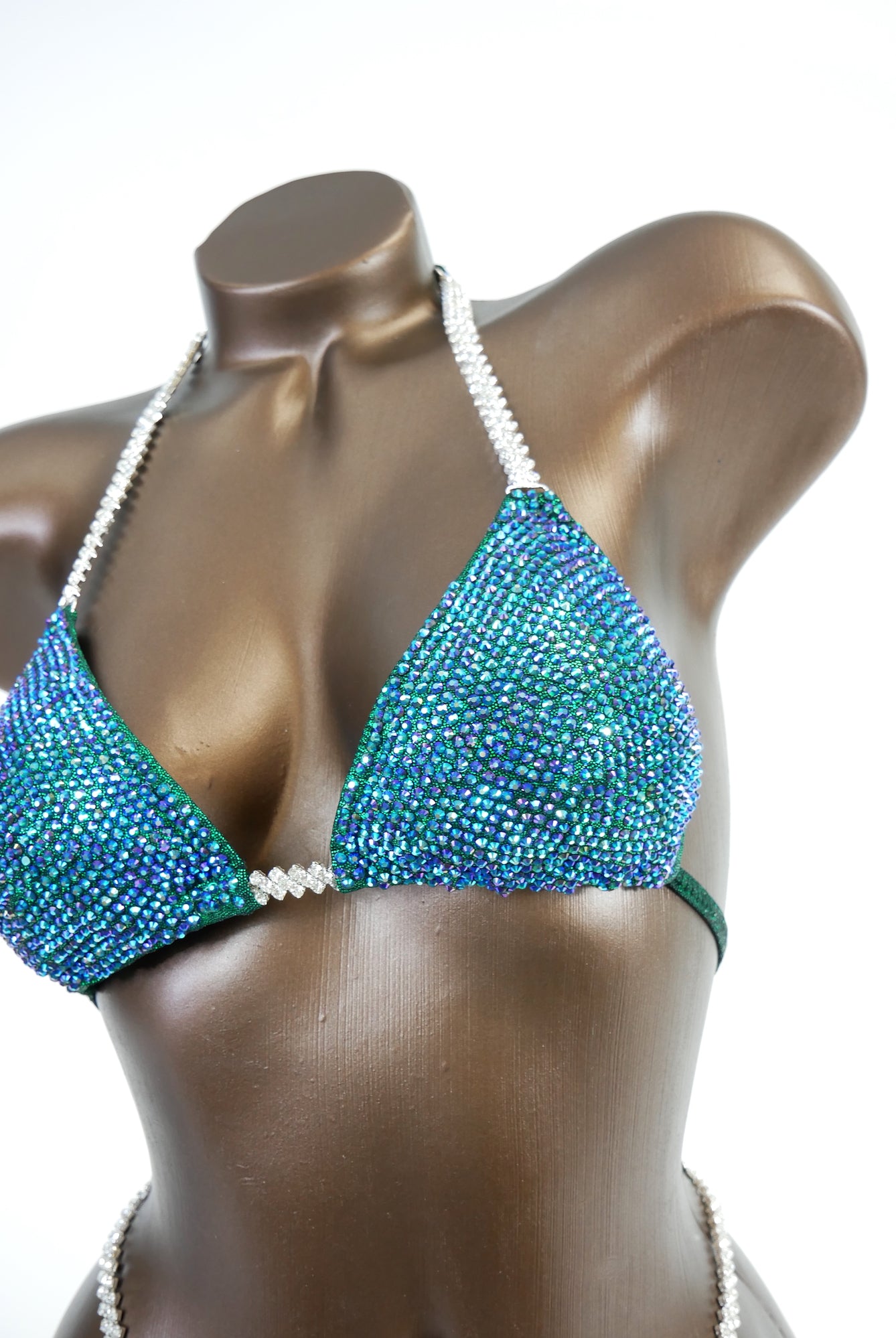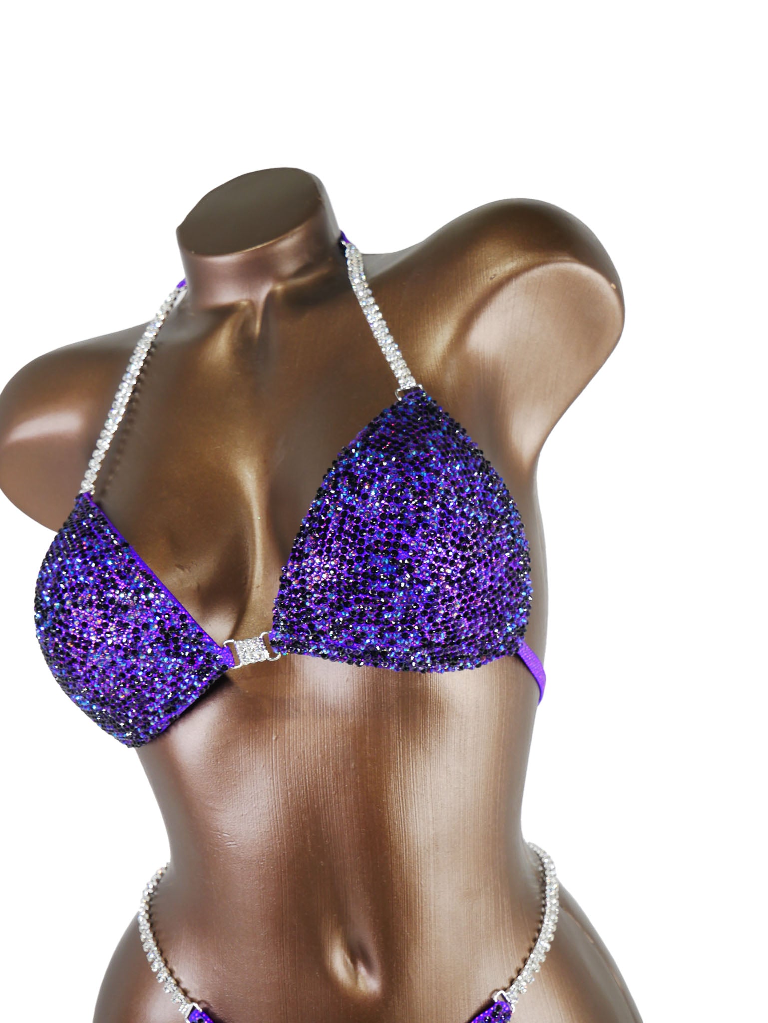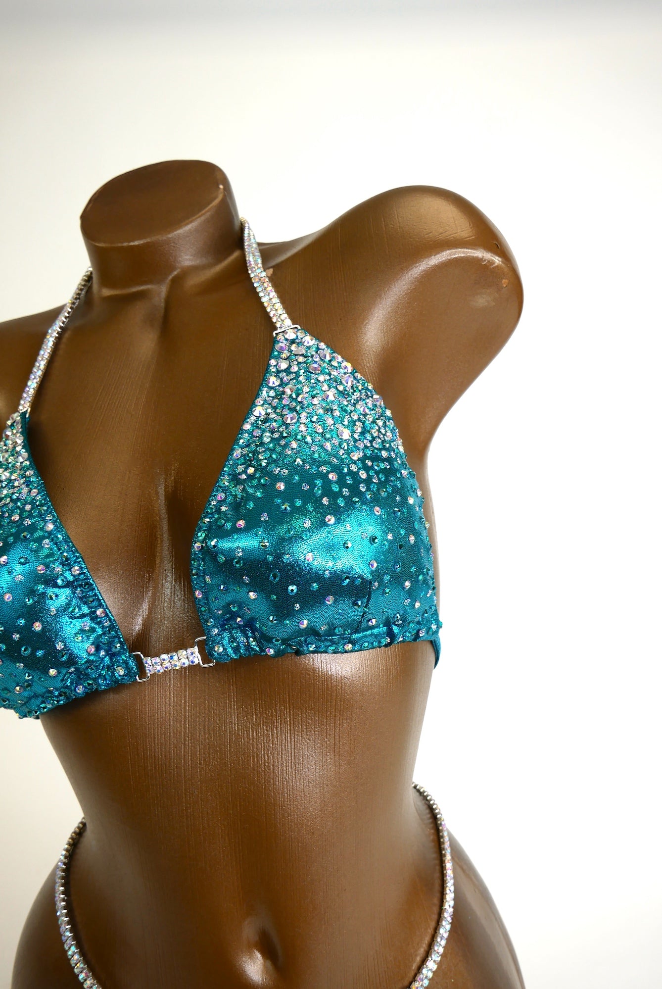 At Saleyla, every competition suit is custom-made by hand using premium fabrics, high-quality crystals, and over 17 years of experience designing suits for bikini, wellness, figure, and fit-model athletes. Each suit is cut, sewn, and rhinestoned to your exact measurements, ensuring a flawless stage fit that highlights your physique and enhances your confidence under the lights.