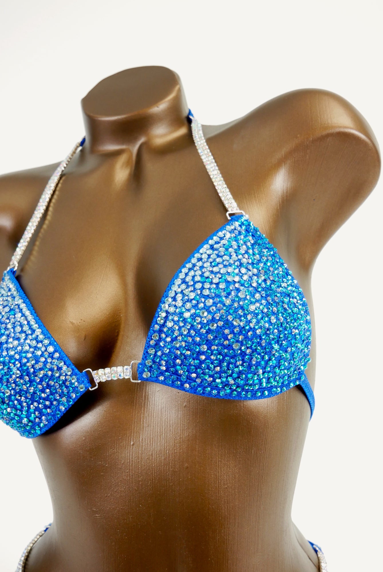 At Saleyla, every competition suit is custom-made by hand using premium fabrics, high-quality crystals, and over 17 years of experience designing suits for bikini, wellness, figure, and fit-model athletes. Each suit is cut, sewn, and rhinestoned to your exact measurements, ensuring a flawless stage fit that highlights your physique and enhances your confidence under the lights.