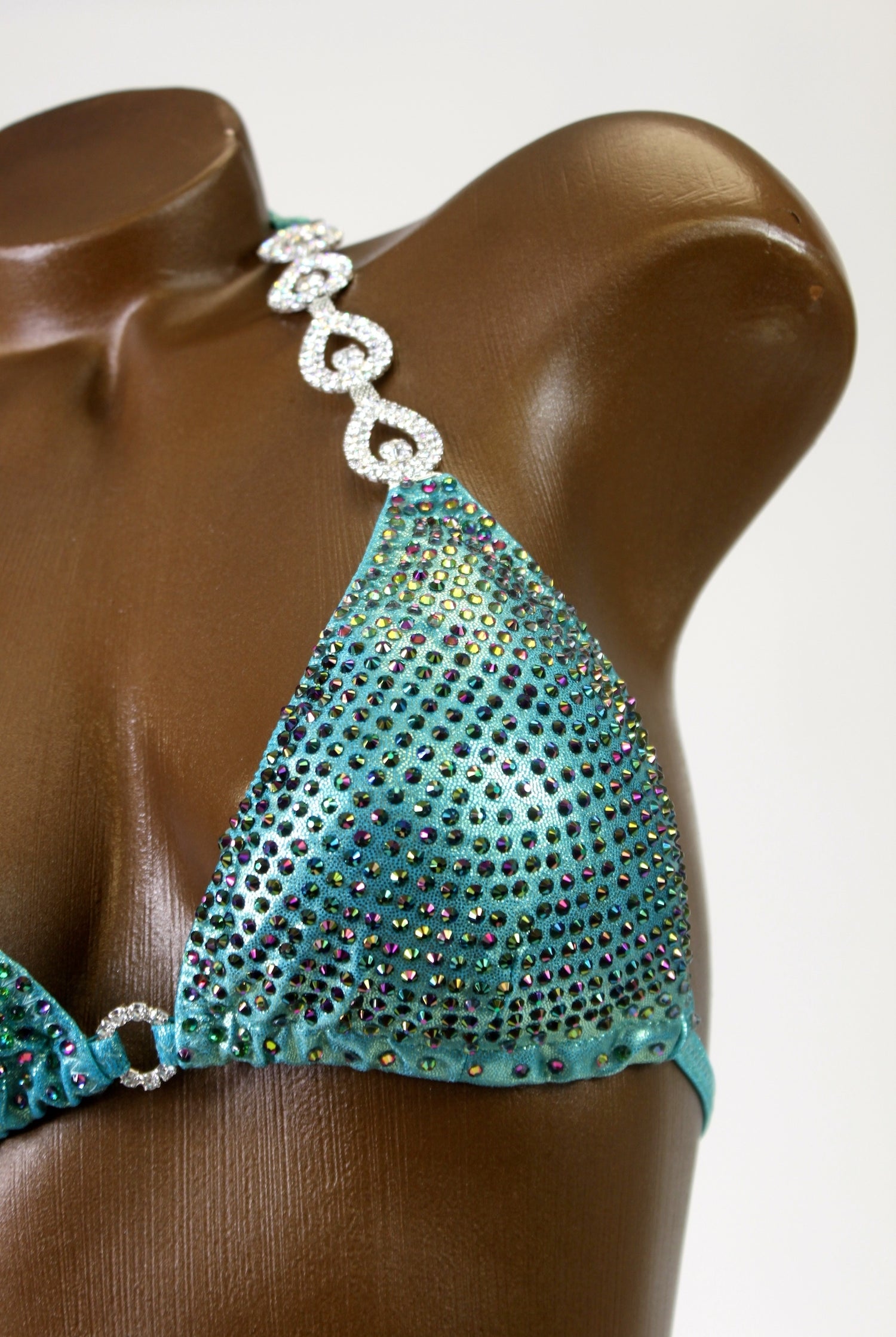 At Saleyla, every competition suit is custom-made by hand using premium fabrics, high-quality crystals, and over 17 years of experience designing suits for bikini, wellness, figure, and fit-model athletes. Each suit is cut, sewn, and rhinestoned to your exact measurements, ensuring a flawless stage fit that highlights your physique and enhances your confidence under the lights.