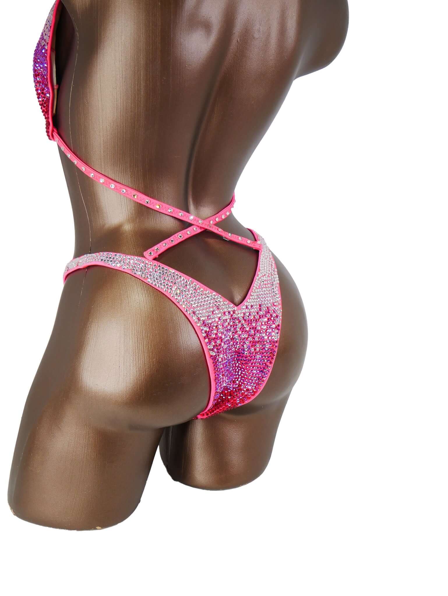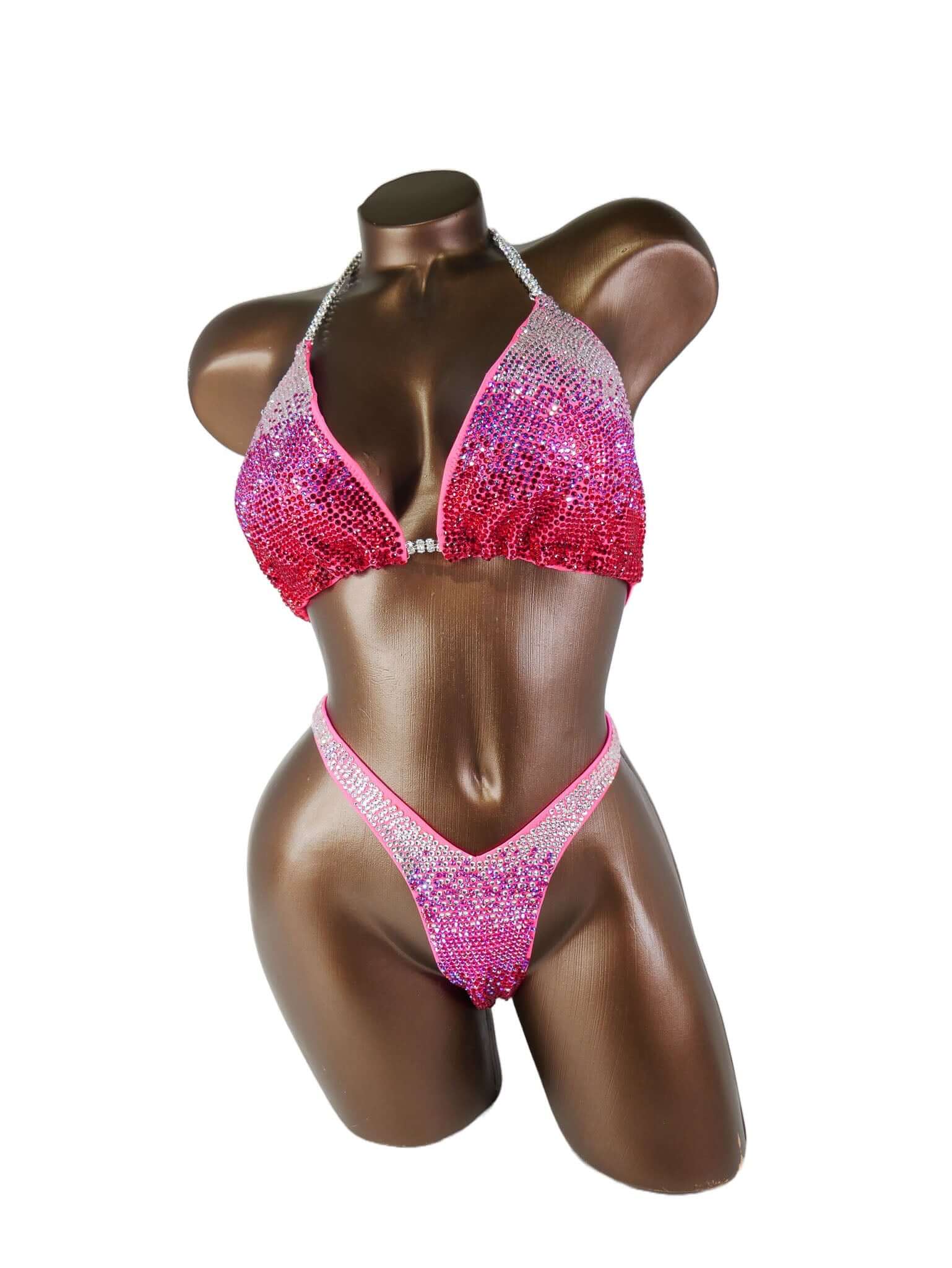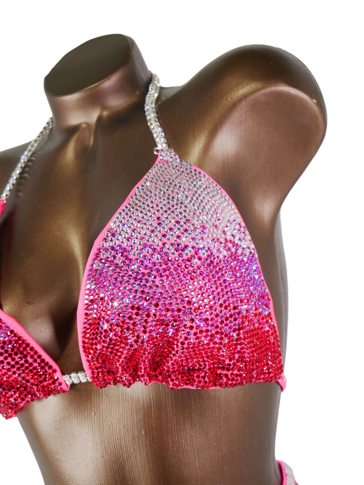 This bikini is designed using hot press czech rhinestones, applied at once to create affordable bikinis.