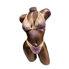 This custom-made competition bikini is designed for athletes competing in NPC, IFBB, WBFF, and OCB events. The Gold Purple Ombre design is made to enhance your shape, sparkle under bright stage lighting, and fit perfectly to your measurements.