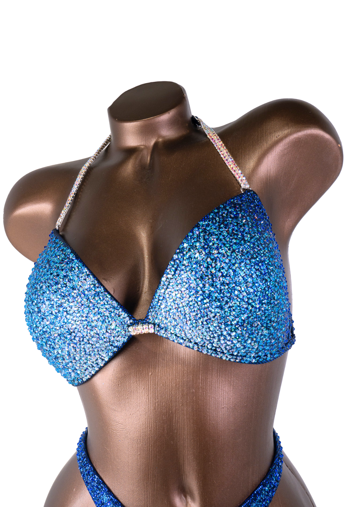 - Features: Double close up crystal AB rhinestone connectors, decorated with sapphire, light sapphire & capri blue rhinestones, sparkling glitter detail, micro back coverage, fully lined