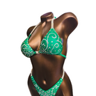 Ready Made Green Hologram Figure Competition Suit | Crystal Clear Rhinestones