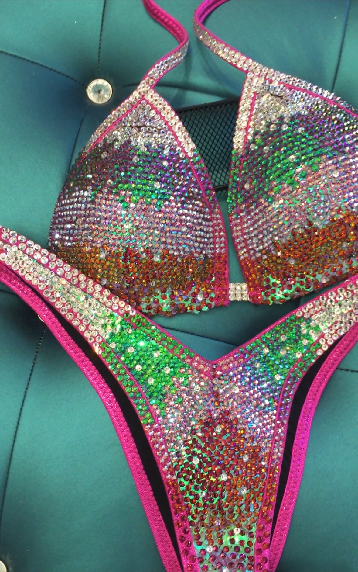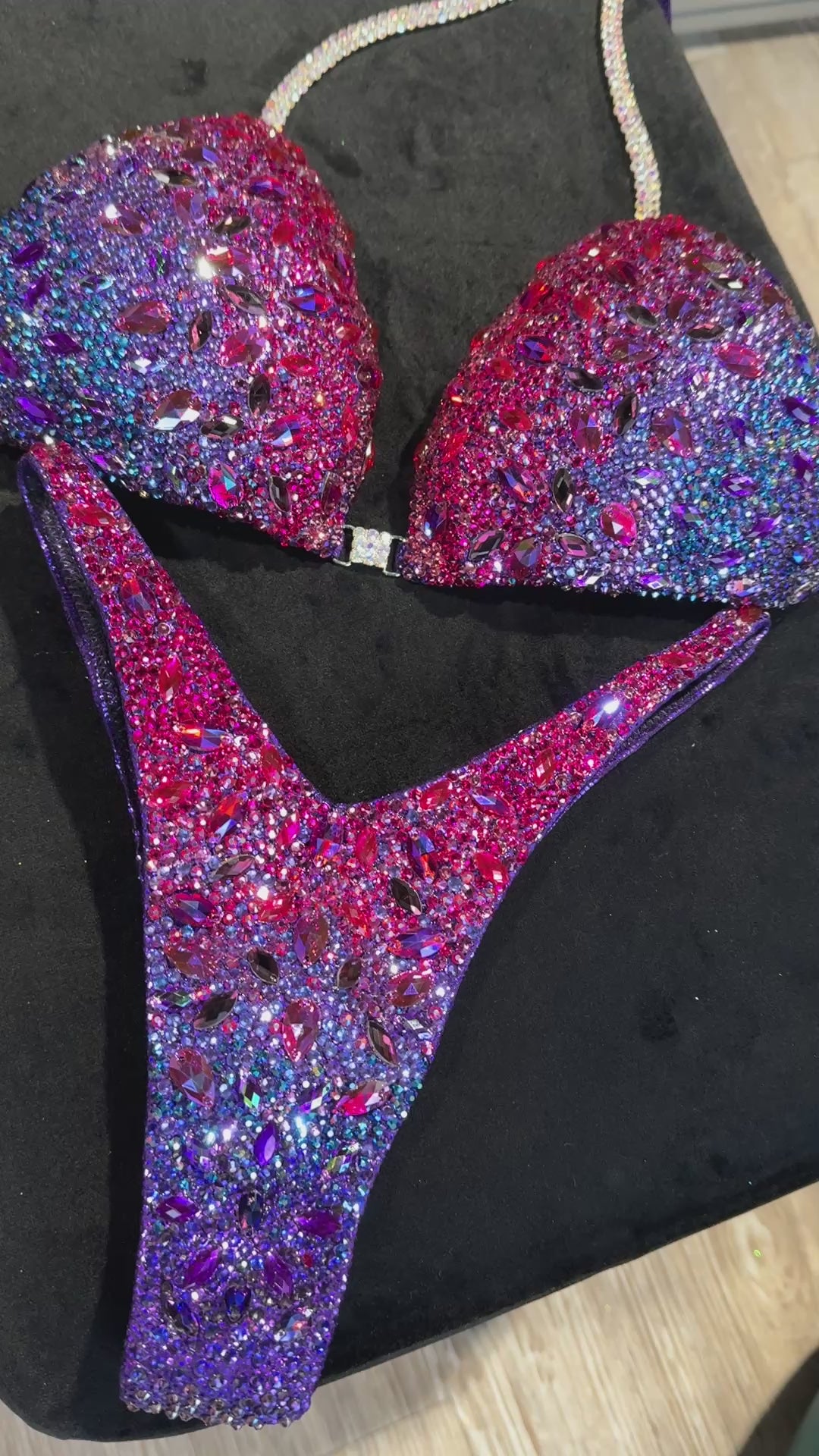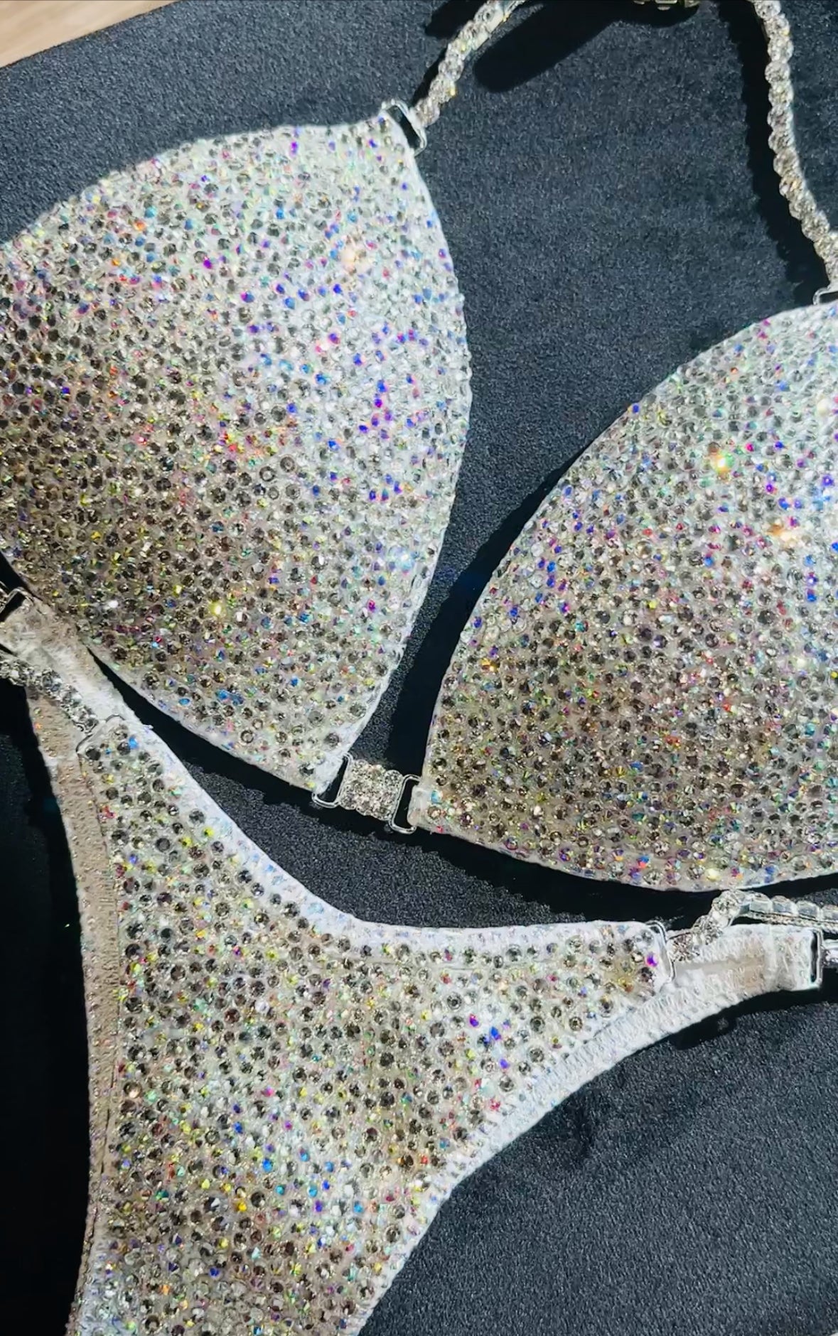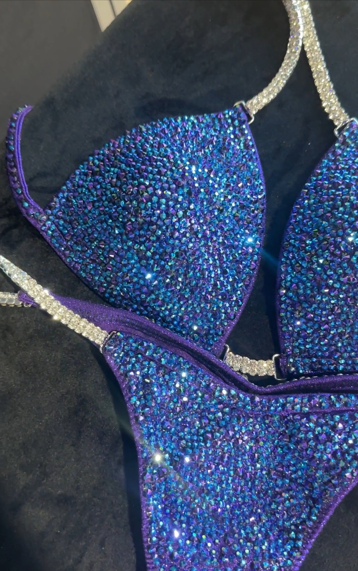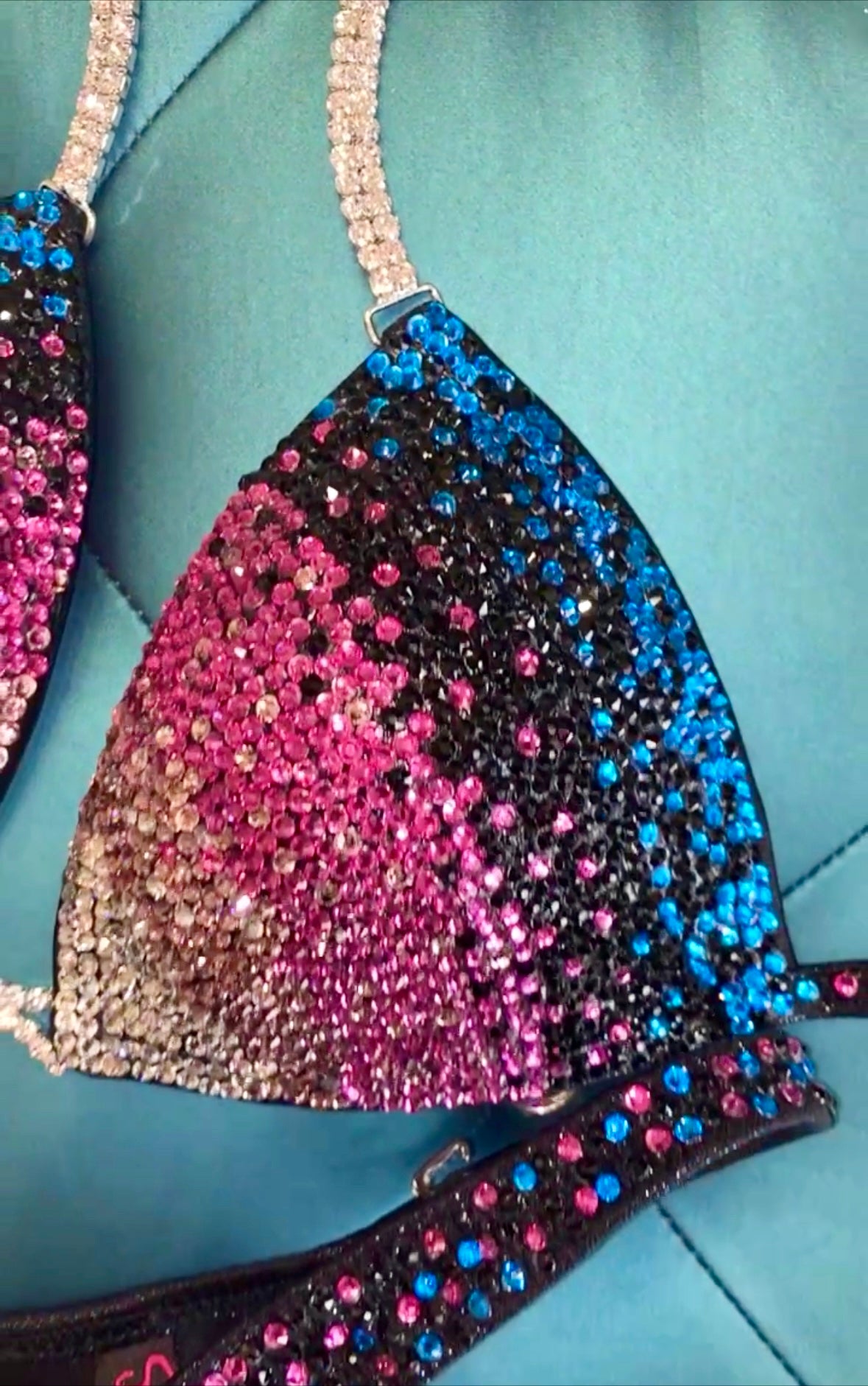 Shop exclusive special request suits at Saleyla. Custom-made, fully rhinestoned, and tailored for fitness competitions. Superior quality guaranteed.
