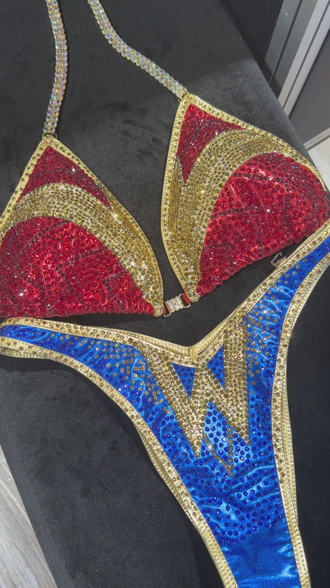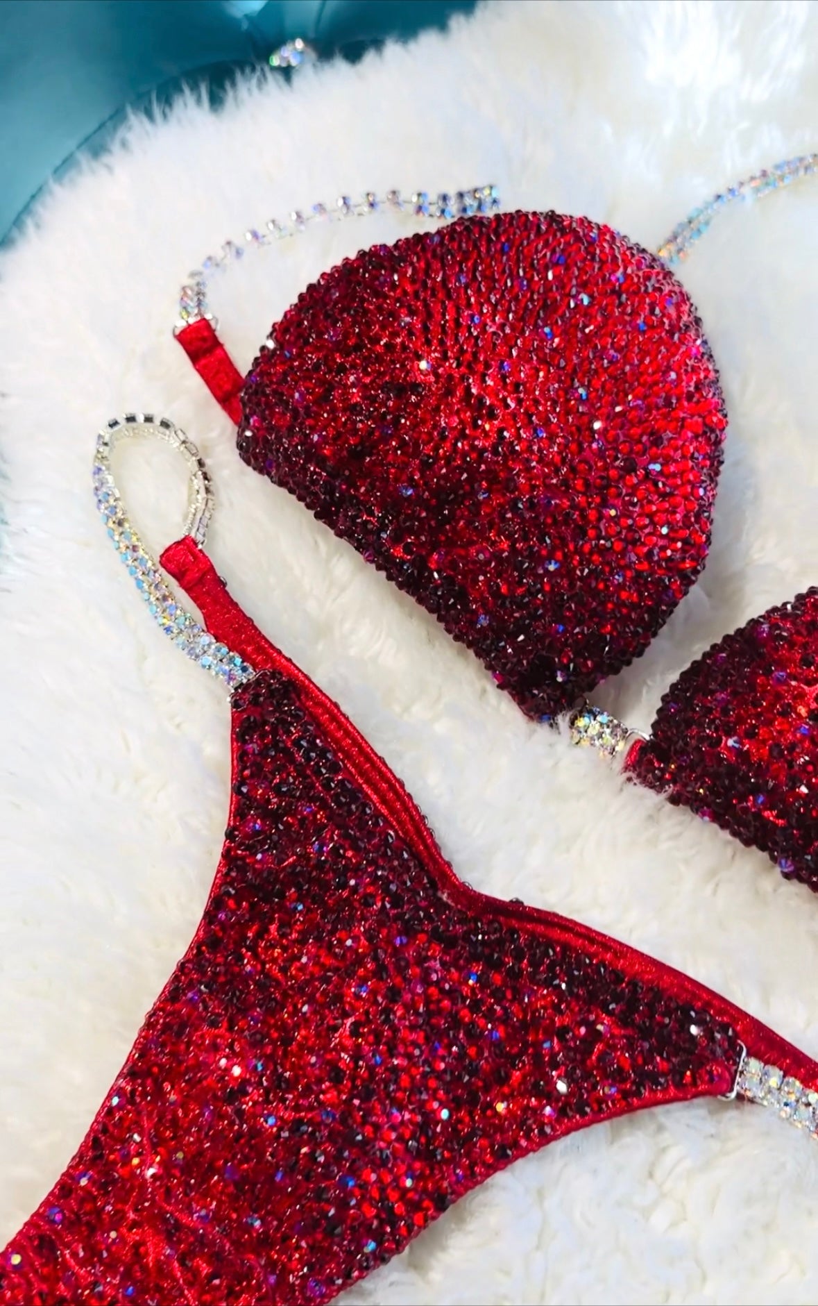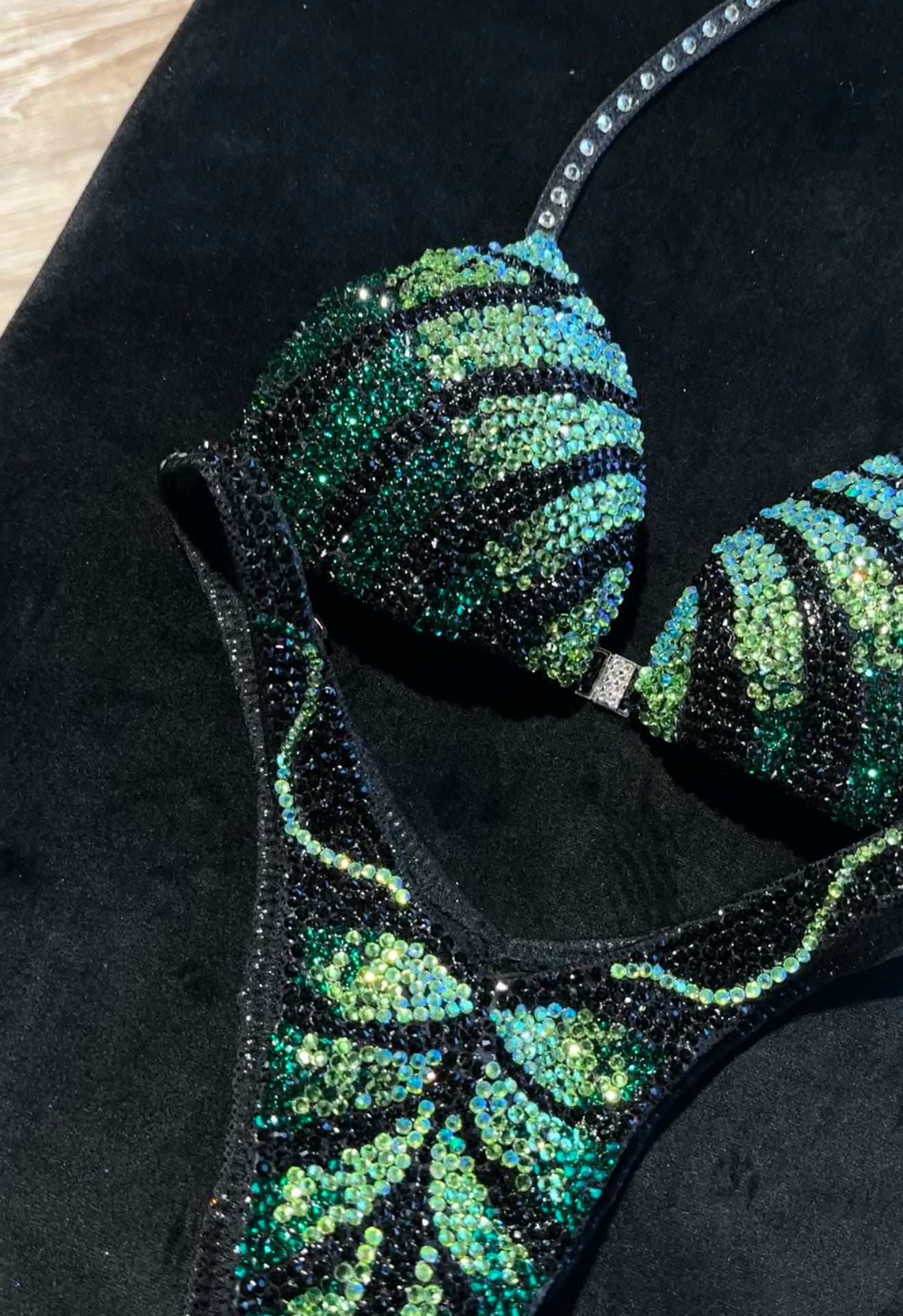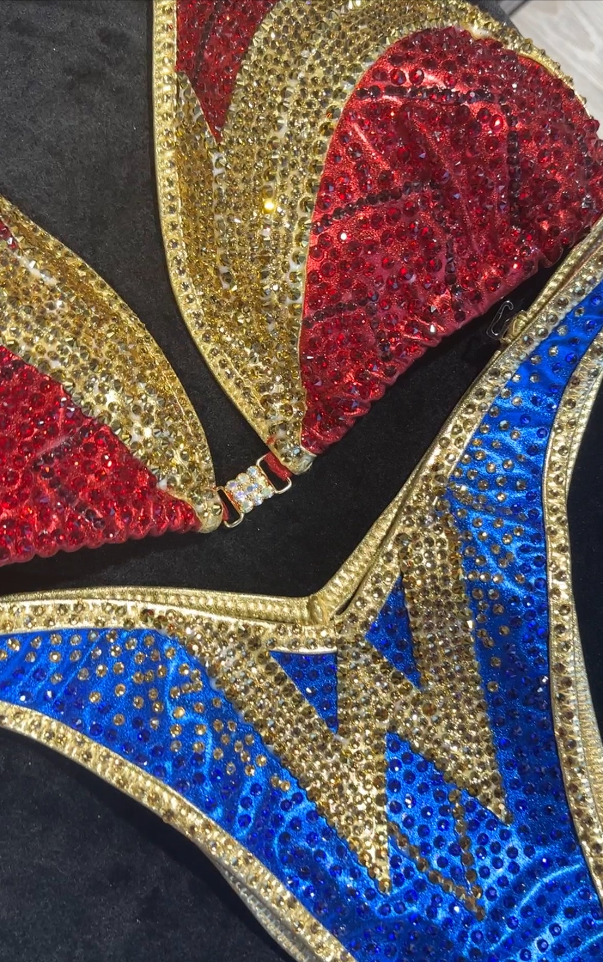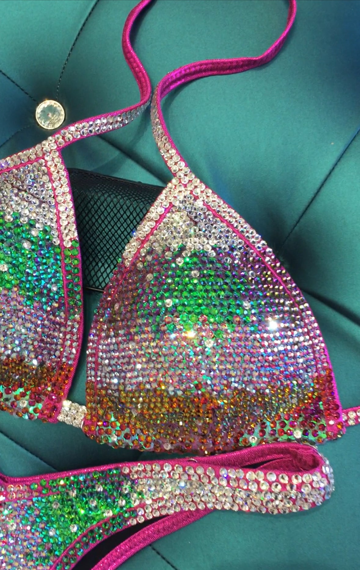 Shop exclusive special request suits at Saleyla. Custom-made, fully rhinestoned, and tailored for fitness competitions. Superior quality guaranteed.