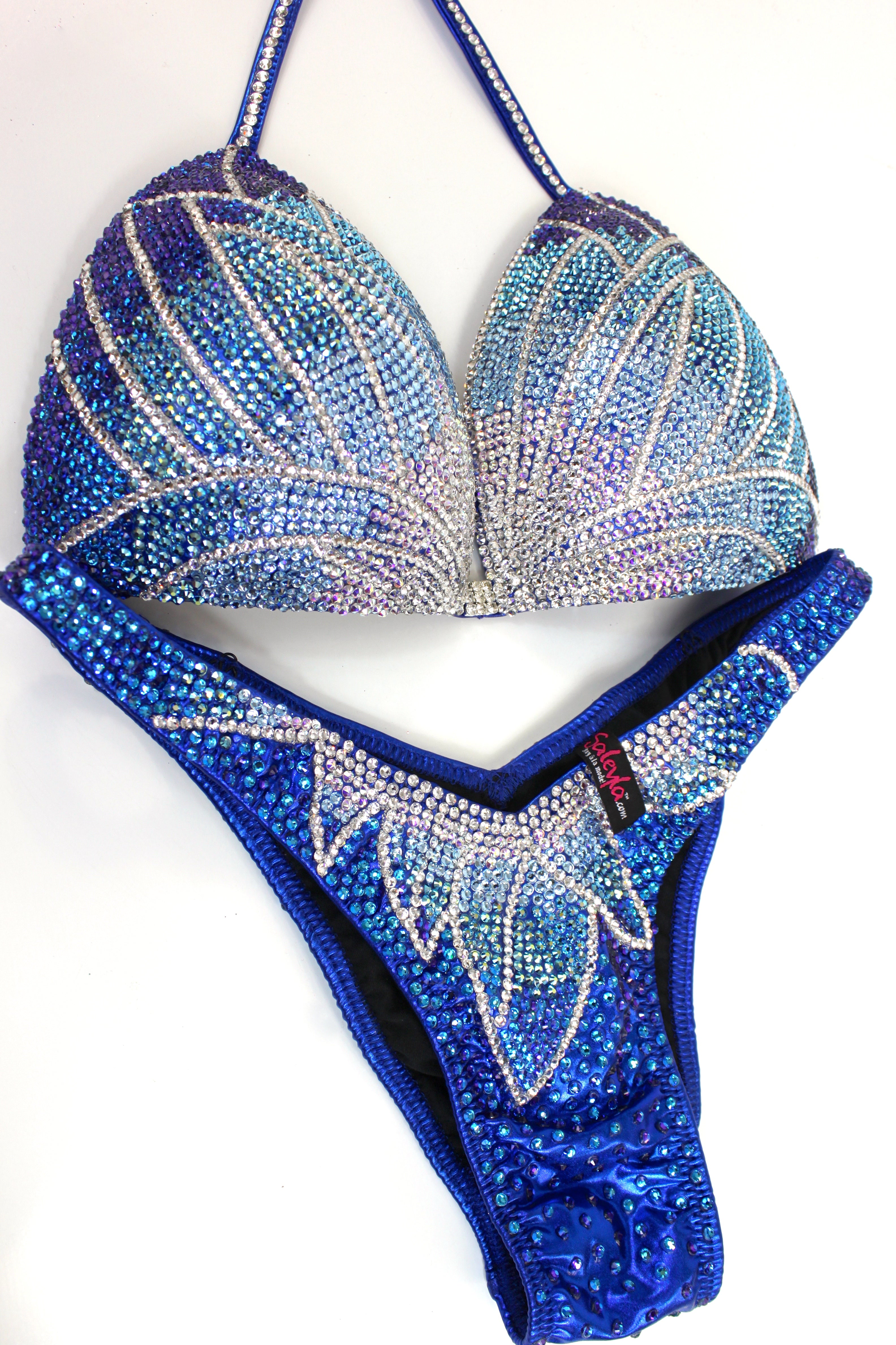 - Features: Rhinestone buckle at center bra, decorated with crystal clear, crystal AB, light aquamarine, capri AB & sapphire blue rhinestones, moderate back coverage, fully lined