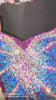 This custom-made competition bikini is designed for athletes competing in NPC, IFBB, WBFF, and OCB events. The Blue Shades on Deep Fuchsia design is made to enhance your shape, sparkle under bright stage lighting, and fit perfectly to your measurements.