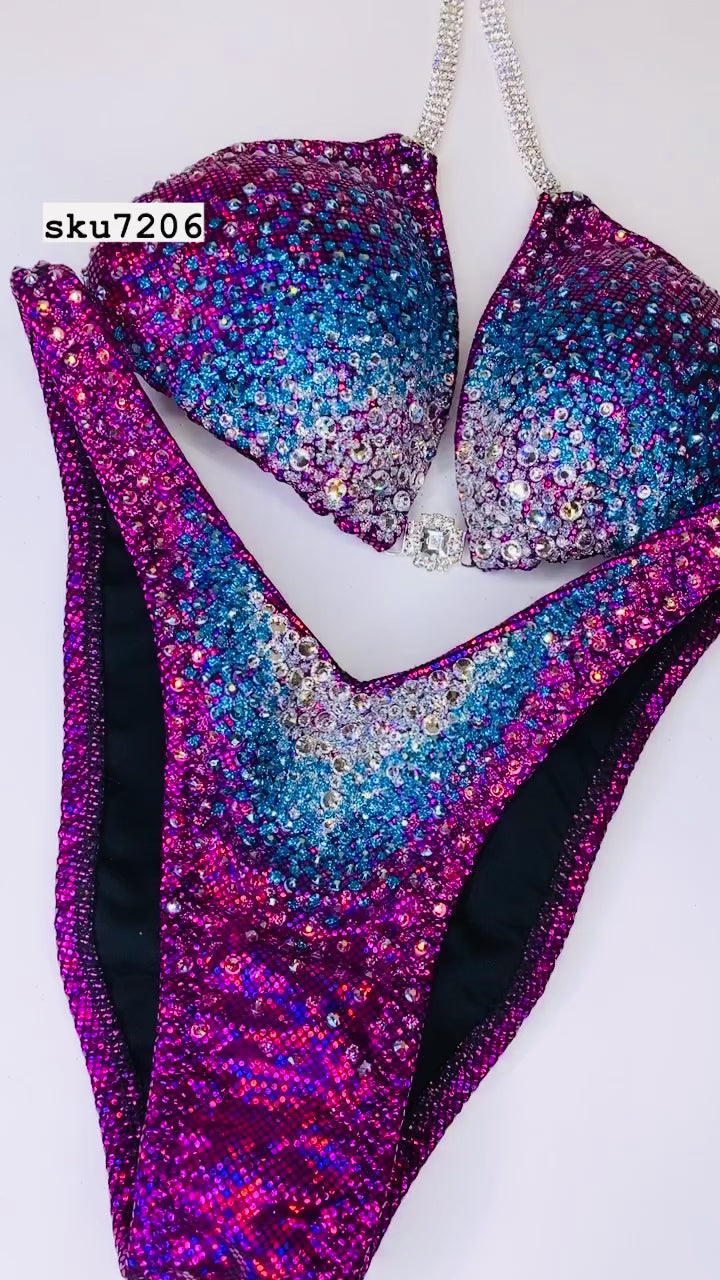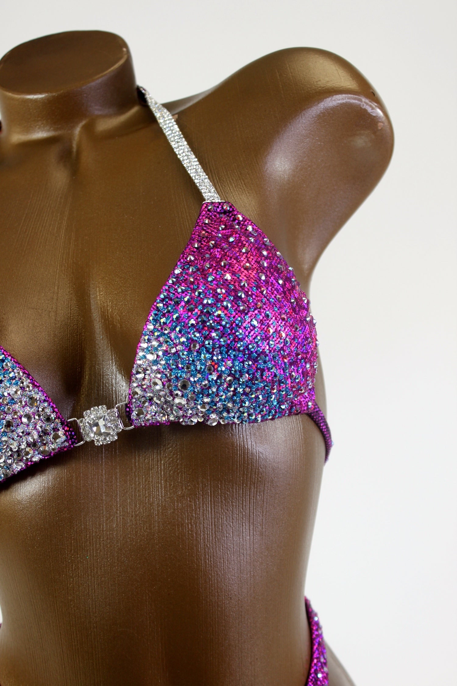 This custom-made competition bikini is designed for athletes competing in NPC, IFBB, WBFF, and OCB events. The Deep design is made to enhance your shape, sparkle under bright stage lighting, and fit perfectly to your measurements.
