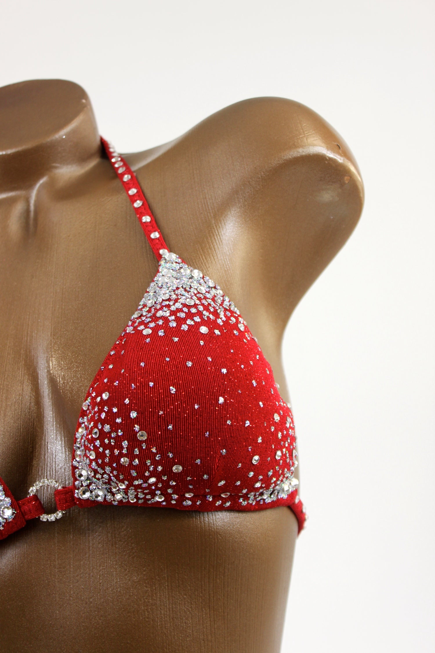 - Features: Rhinestone ring at center bra, decorated with crystal clear rhinestones, sparkling glitter detail, moderate back coverage, fully lined