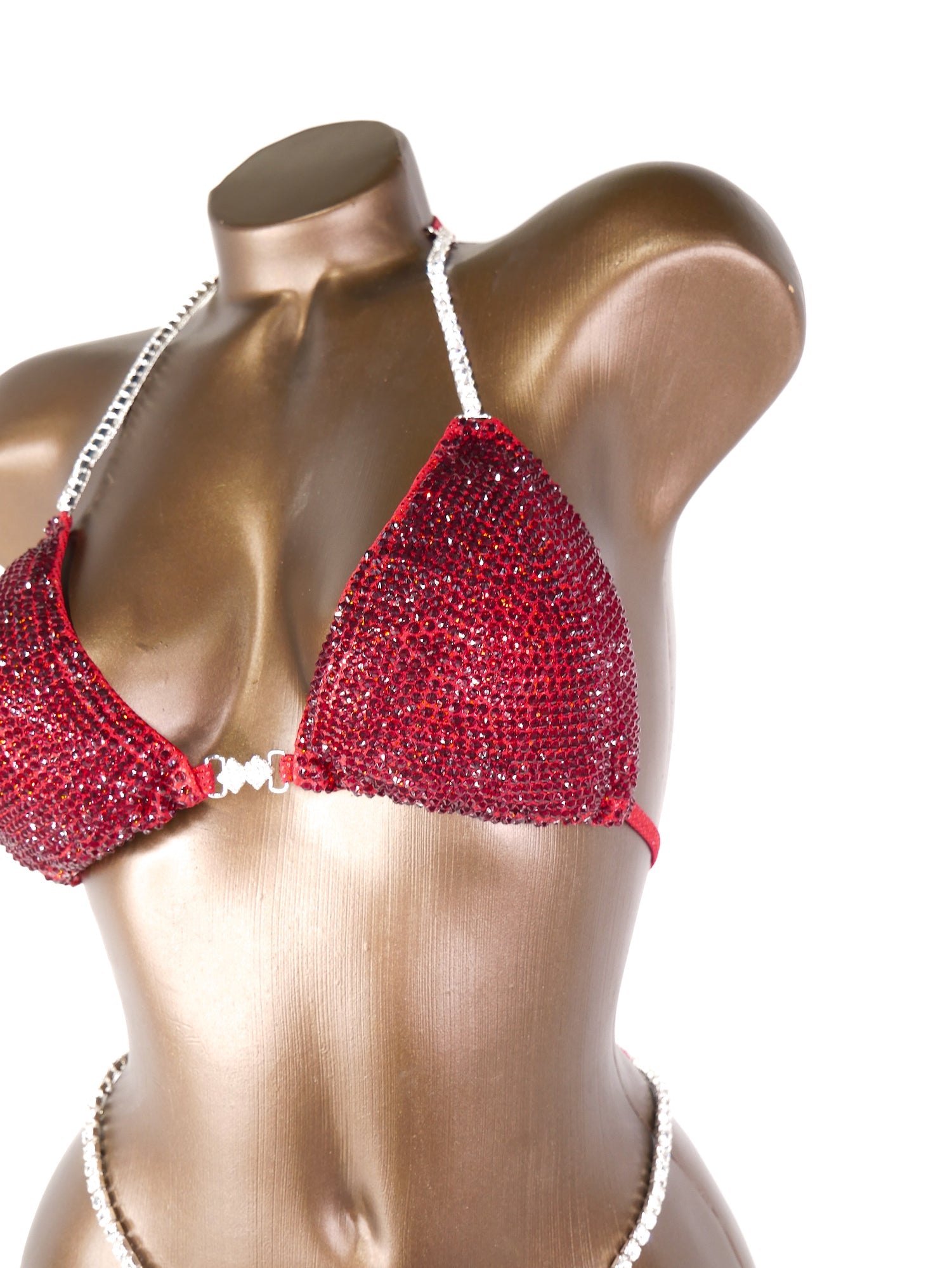 Deep Red Metallic Bikini Suit/ Competition Posing Bikini