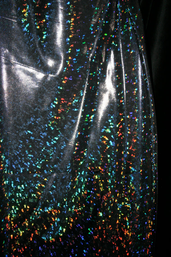 Black Shattered Glass Hologram Spandex Fabric Sample