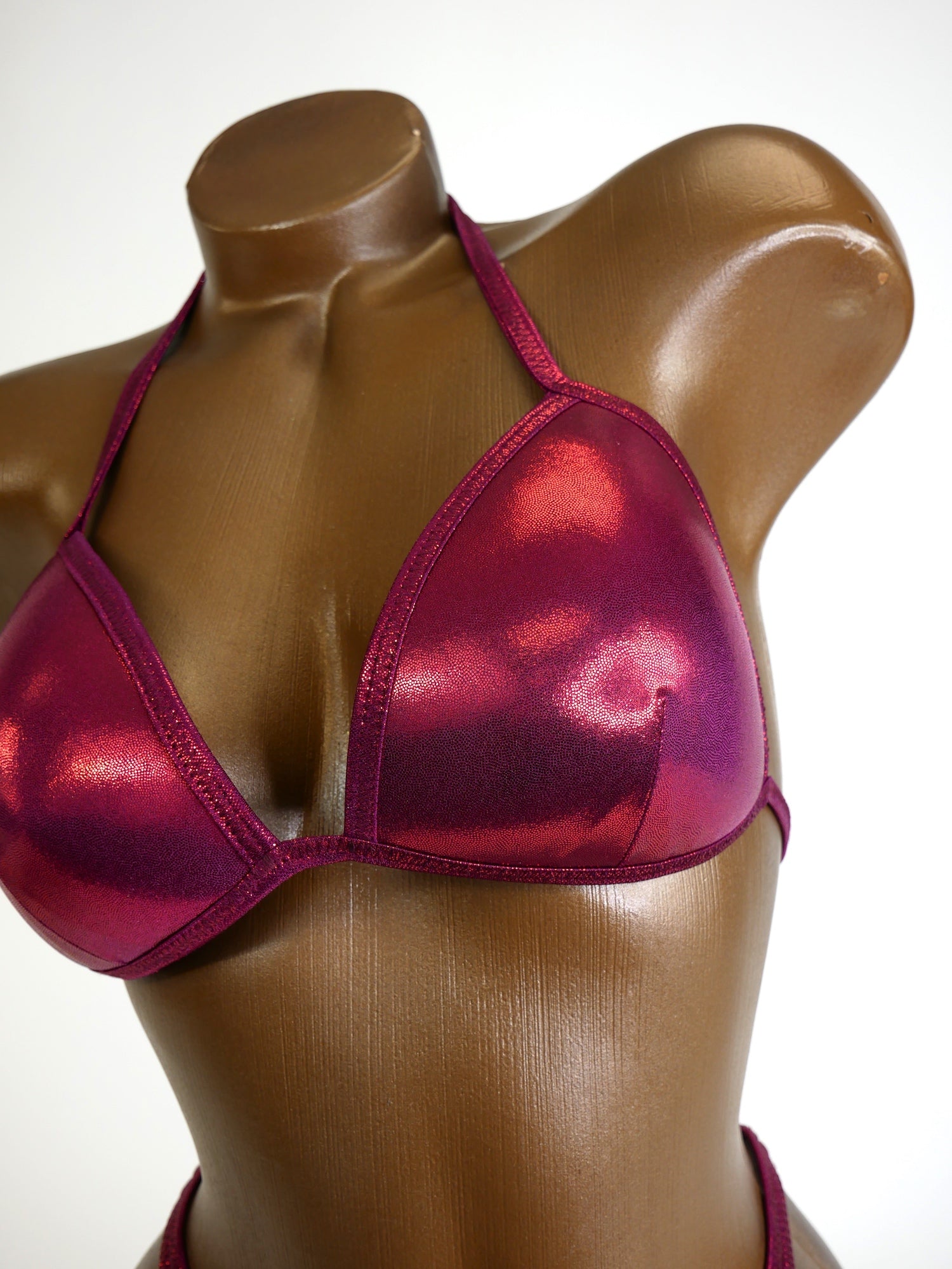 - Fabric: Deep red metallic spandex
