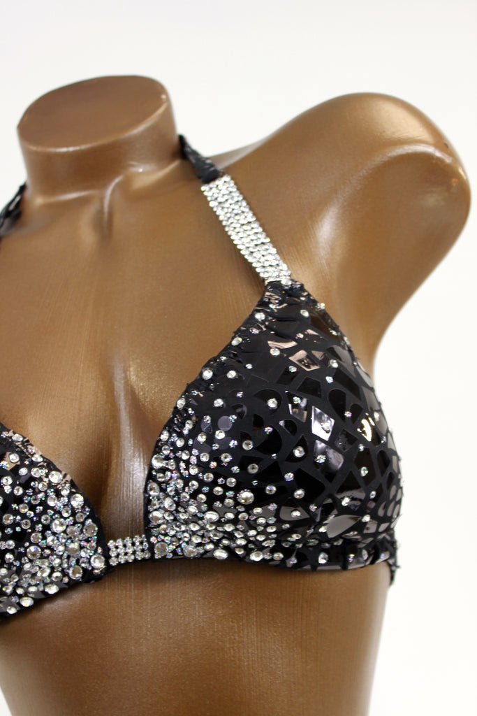 - Features: Triple crystal clear rhinestone connector at bra, windows connectors at hips, decorated with crystal clear rhinestones, sparkling glitter detail, rio back coverage, fully lined
