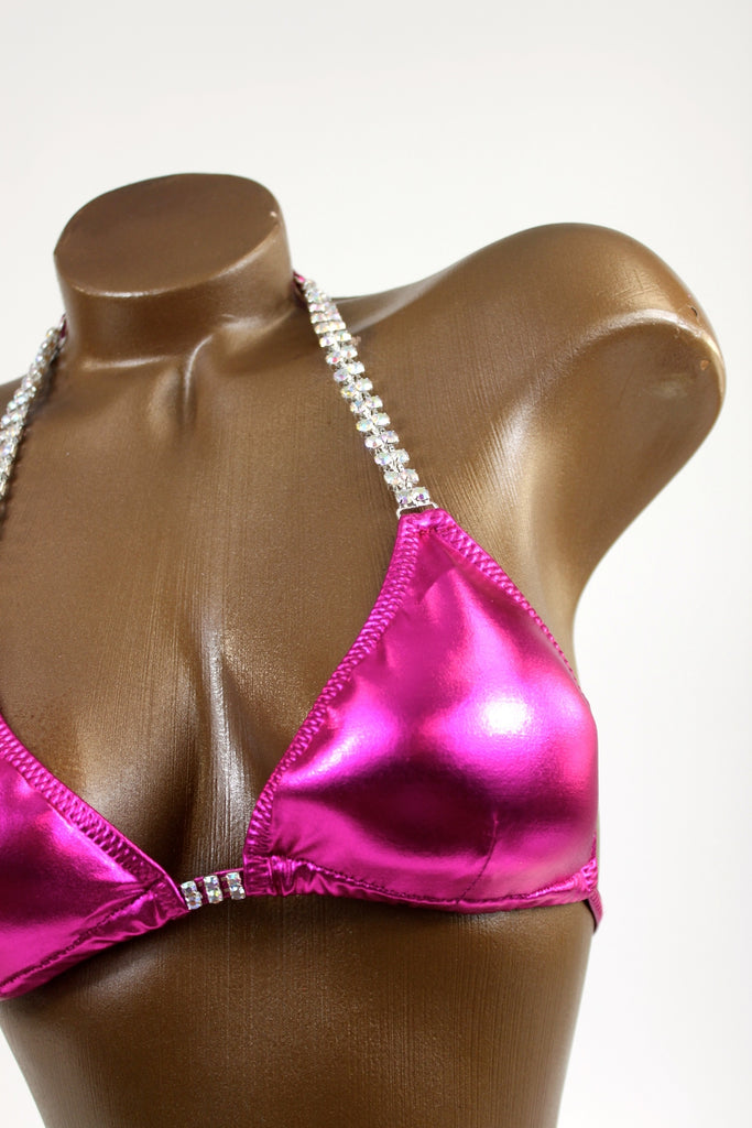 Bright Fuchsia Metallic Spandex Bikini Suit