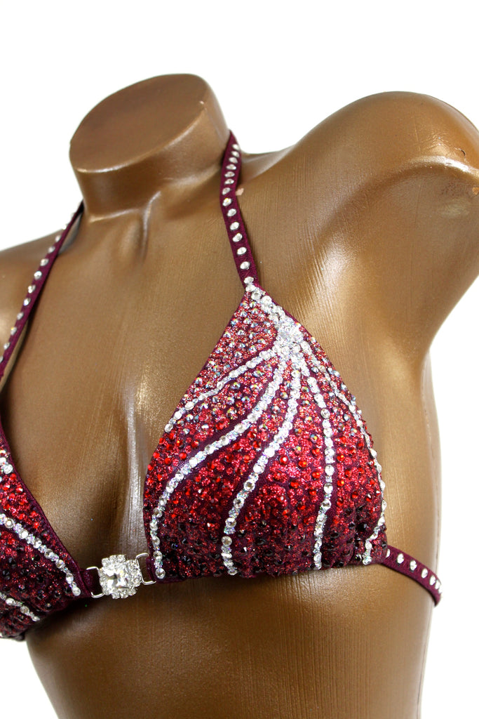 - Features: Rhinestone square at center bra, decorated with crystal clear, red AB, red & deep burgundy rhinestones, sparkling glitter detail, moderate back coverage, fully lined