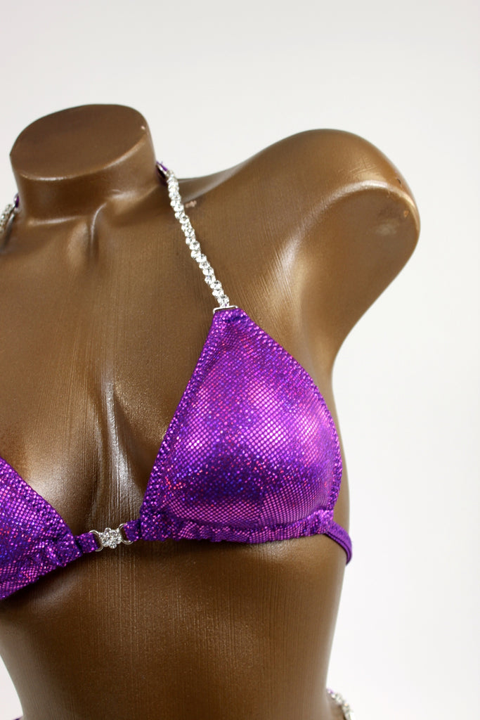 - Features: Single crystal clear rhinestone connector at hips & bra, scrunch back, rio back coverage
