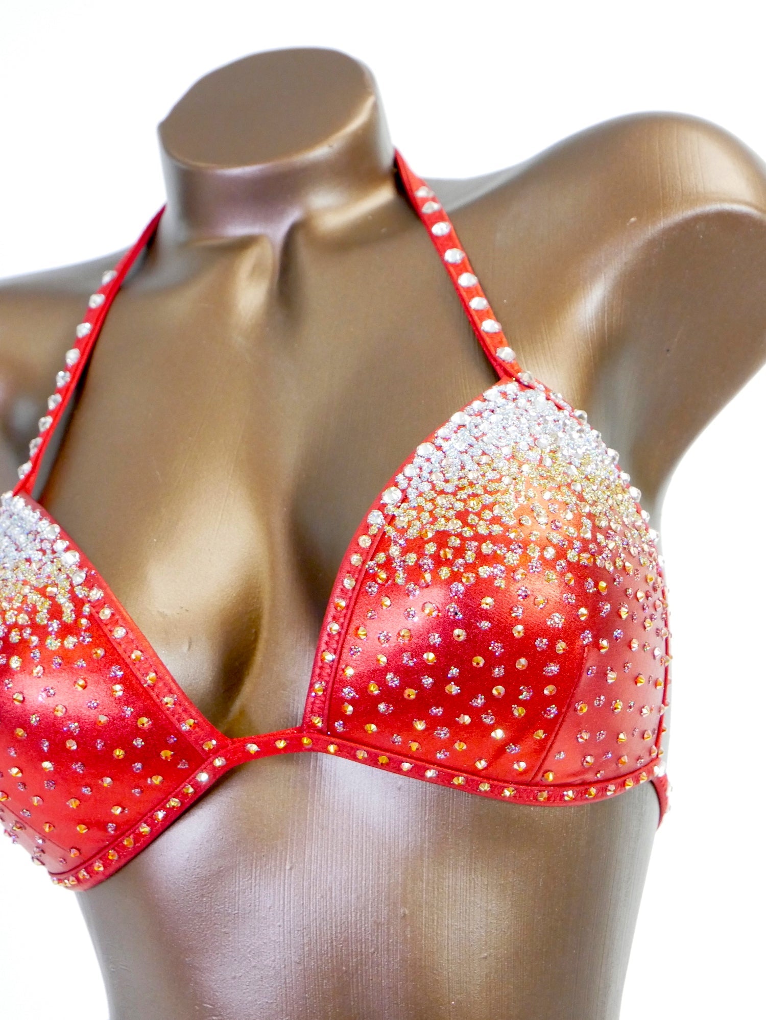 - Features: Decorated with clear, light peach and hyacinth AB rhinestones, sparkling glitter detail, Rio back coverage