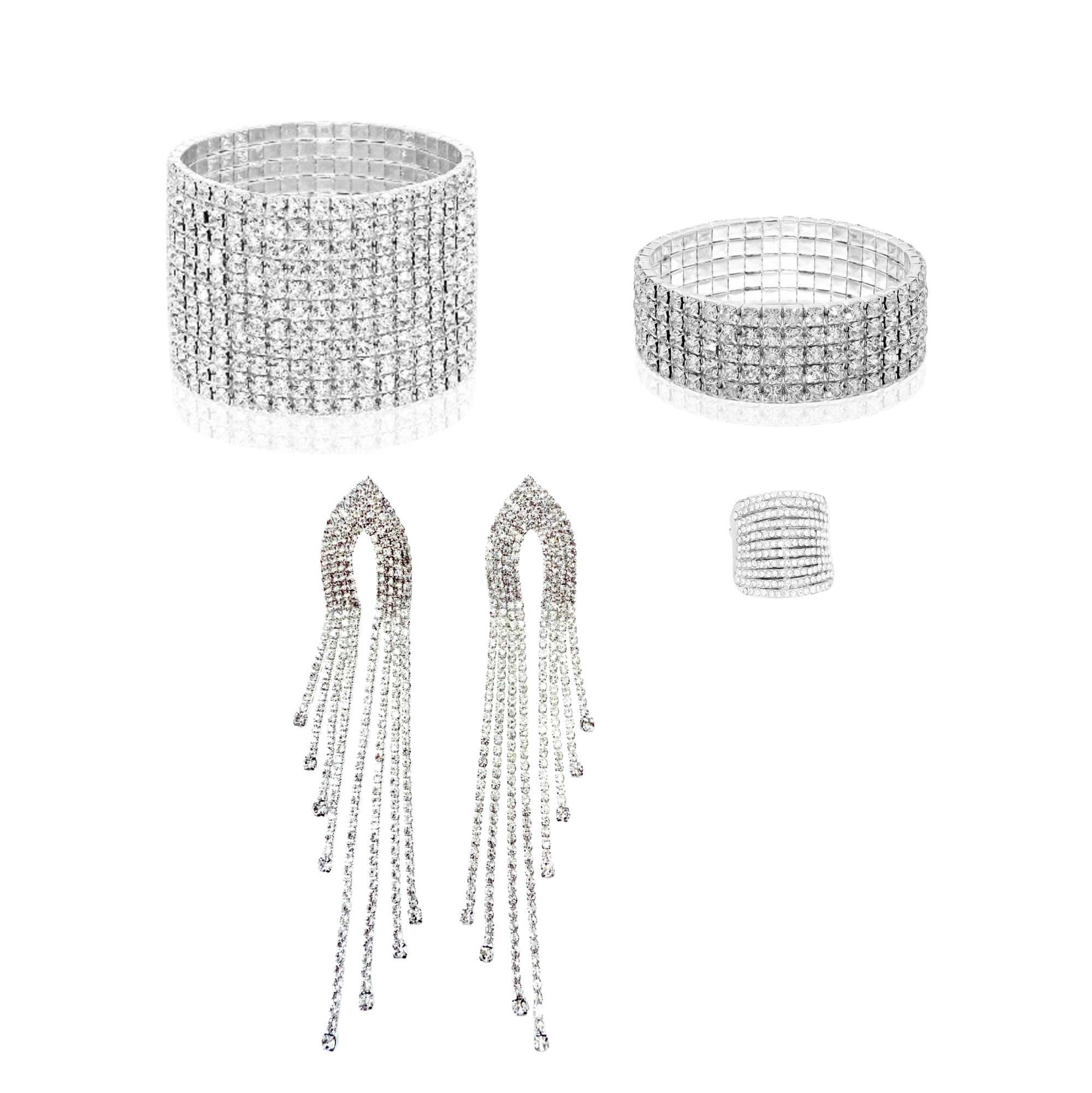 Shine like a star with the Celestia Set, a radiant collection of crystal-clear rhinestone jewelry designed for the stage. This elegant 4-piece set adds dazzling brilliance to your competition look with just the right amount of sparkle and drama.