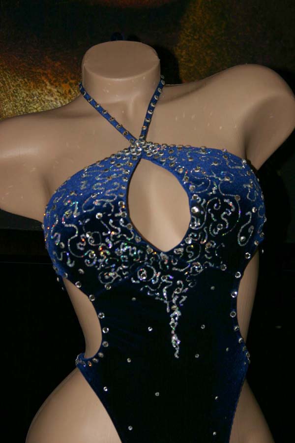 - Features: decorated with crystal clear rhinestones in various sizes, sparkling glitter detail swirls, moderate back coverage, fully lined