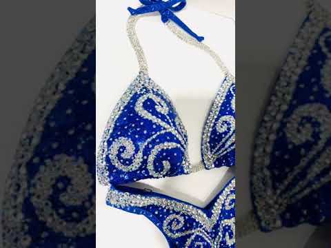 - Features: Triple close up Crystal clear rhinestone connector at bra, decorated with crystal clear rhinestones, sparkling glitter detail, moderate back coverage, fully lined
