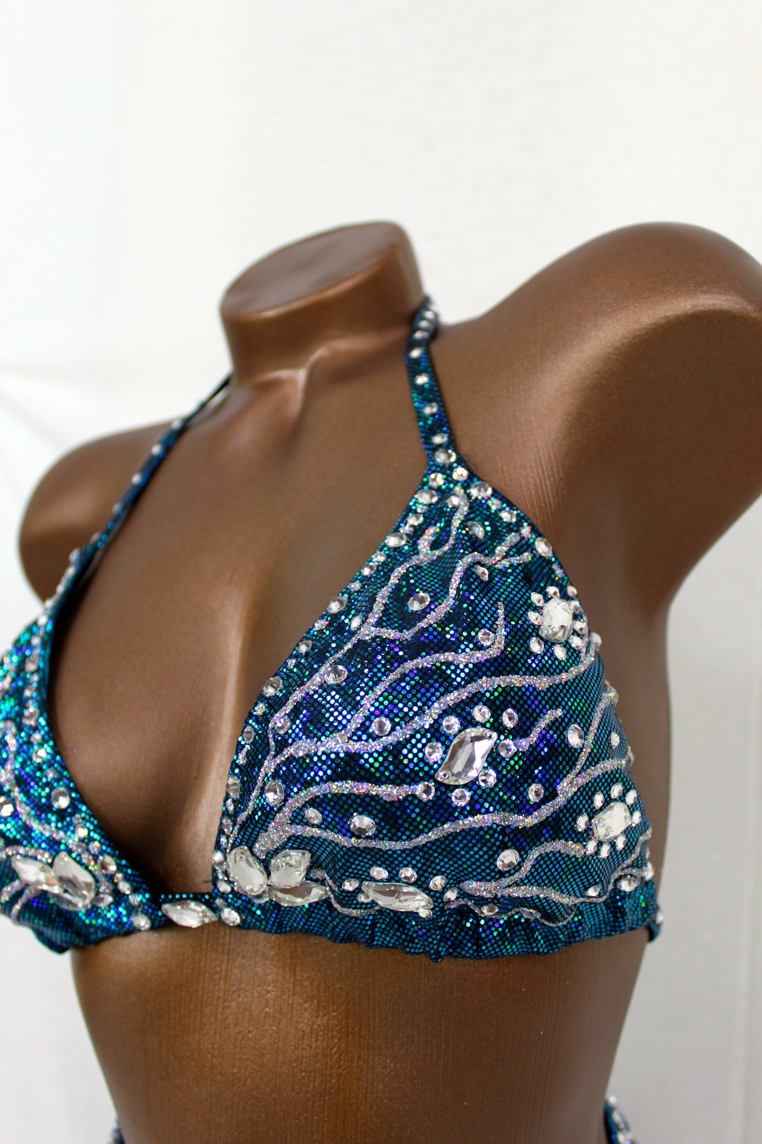 - Features: decorated with crystal clear rhinestones in various sizes, sparkling glitter detail, rio back coverage, fully lined