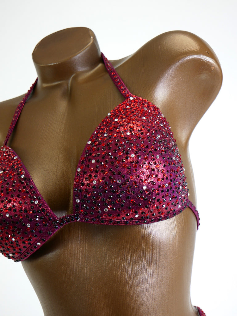 - Features: Decorated with crystal clear, siam, dark siam rhinestones, Rio Pro back coverage, fully lined