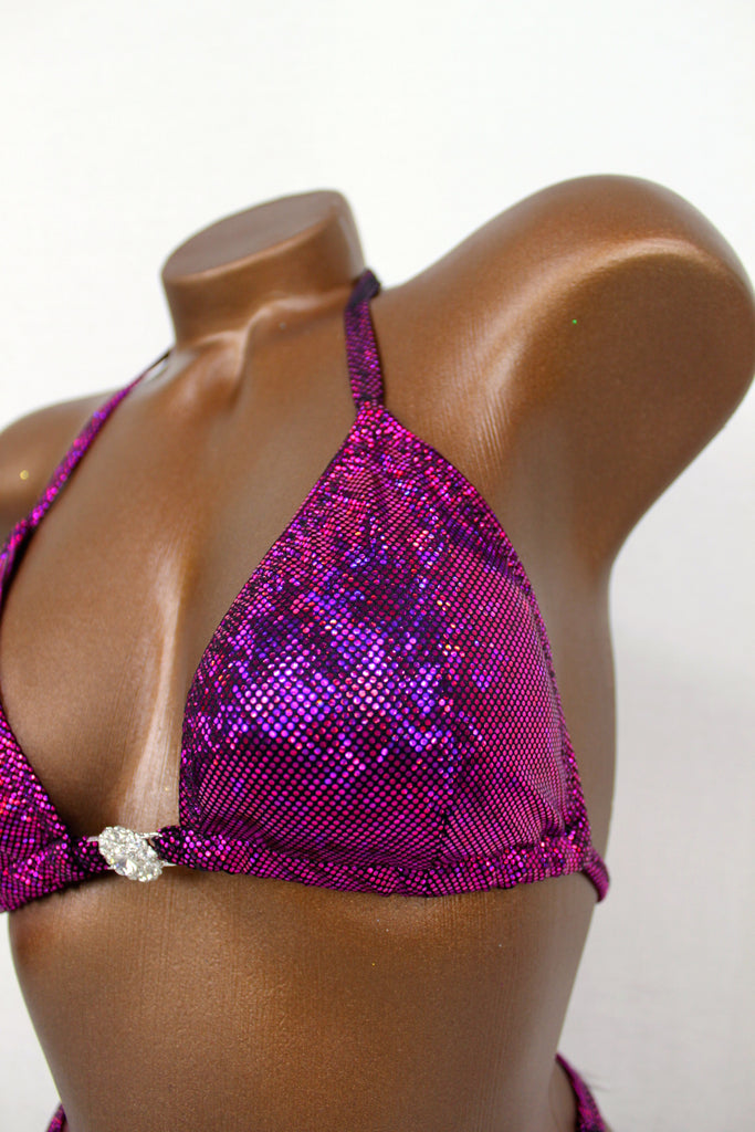 - Features: Flower crystal clear rhinestone connector at center bra, rio back coverage, fully lined