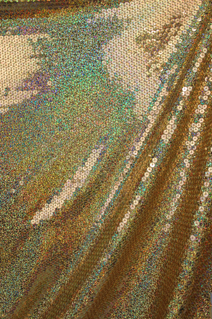 Gold Holographic Sequin Poly/Spandex Fabric Sample