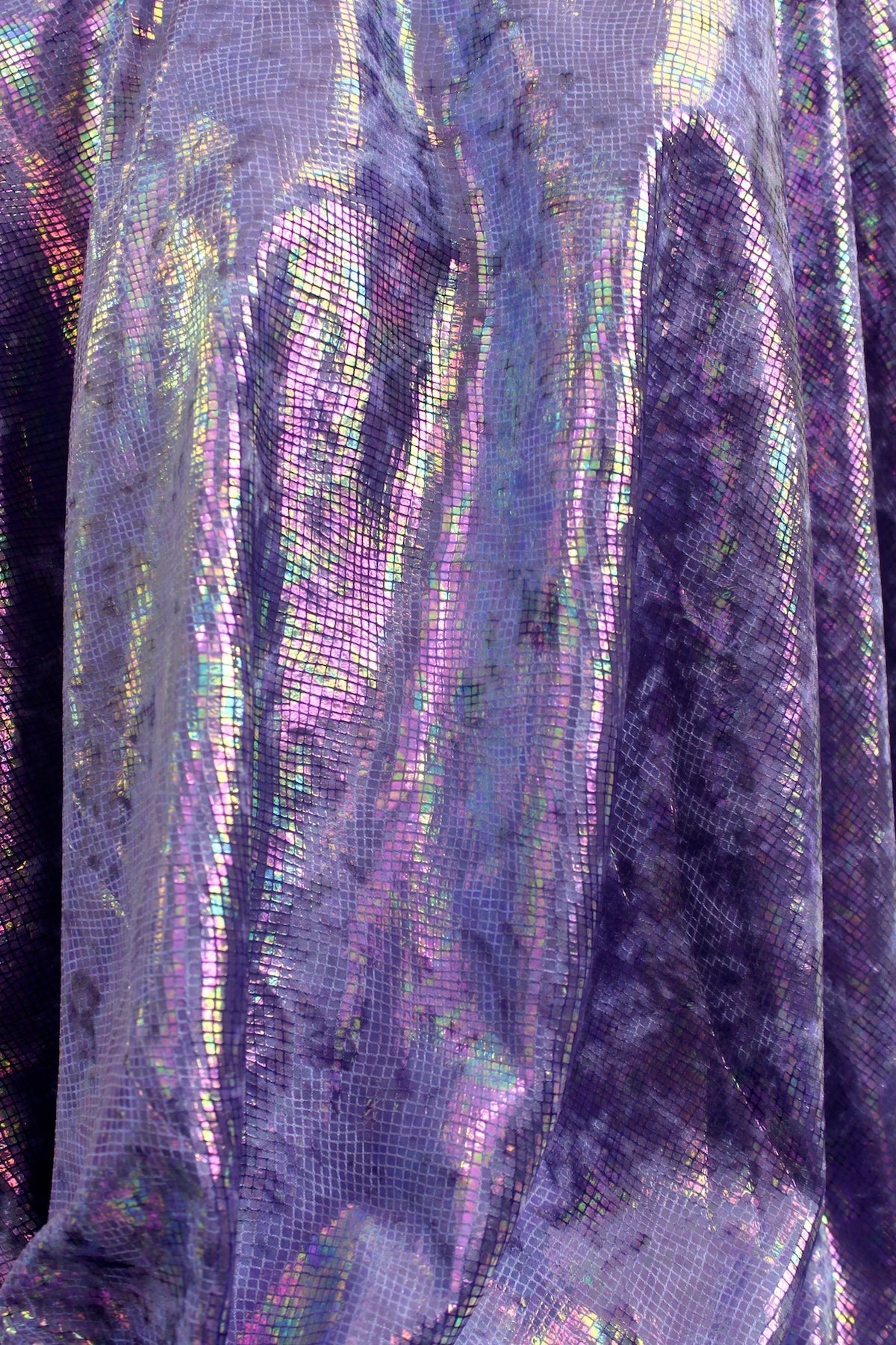 Purple Iridescent Snake Print Velvet Fabric Sample