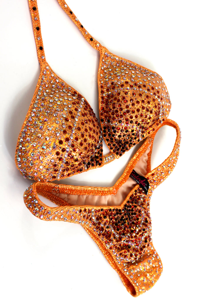 Orange Gradient Hologram Spandex Crystals Figure Competition Suit