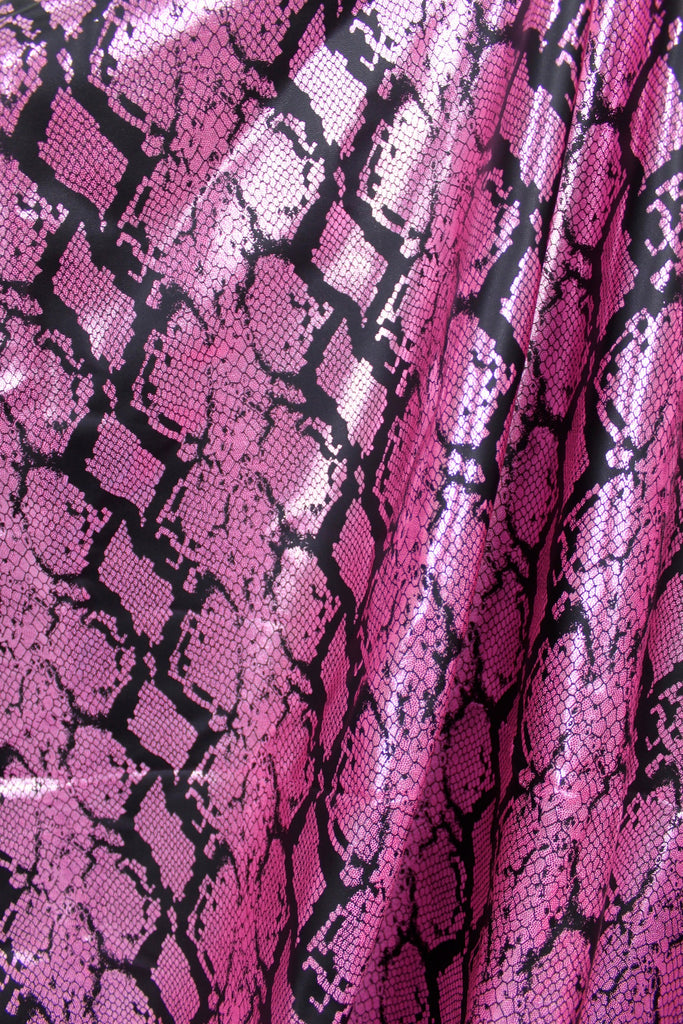 Pink Metallic Black Snake Print Spandex Fabric Sample