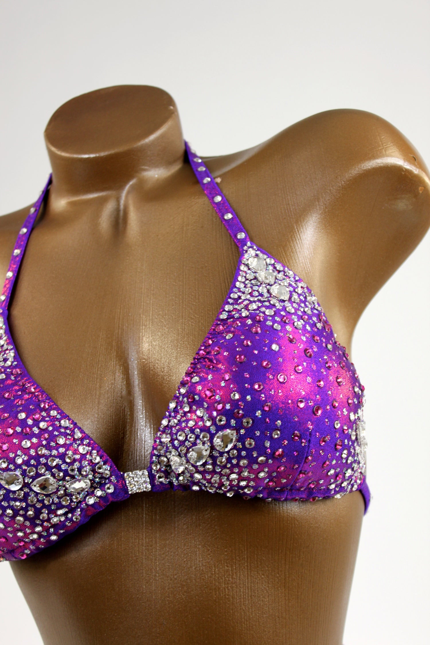 - Features: Crystal clear rhinestone buckle center connector, decorated with crystal clear & fuchsia rhinestones in various size, sparkling glitter detail, moderate back coverage, fully lined