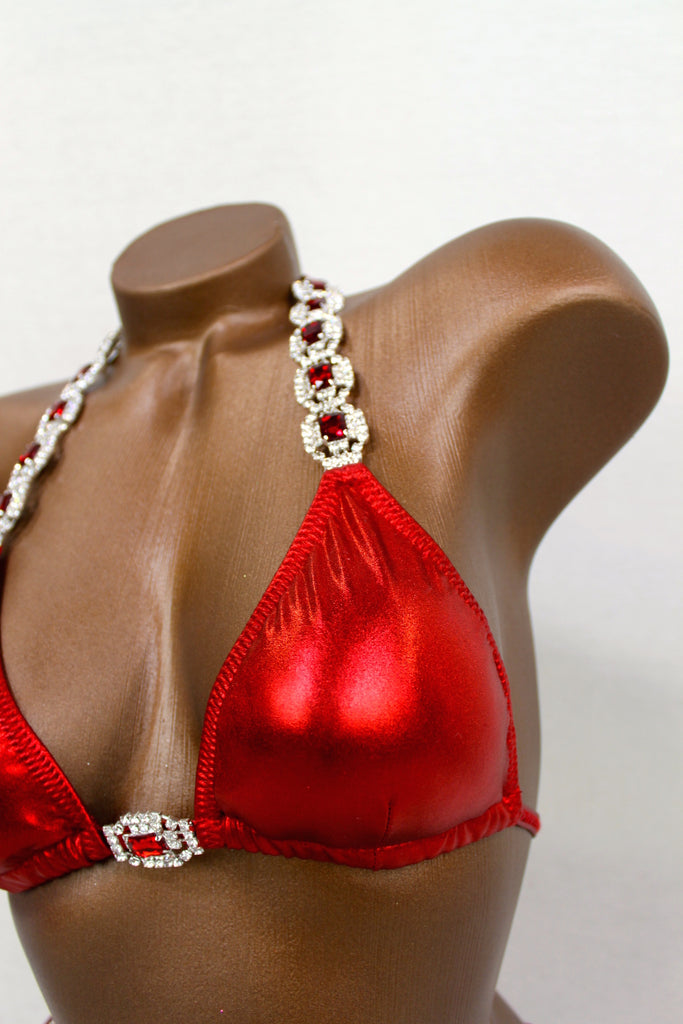 Ruby Red Metallic Bikini Suit/ Competition Posing Bikini