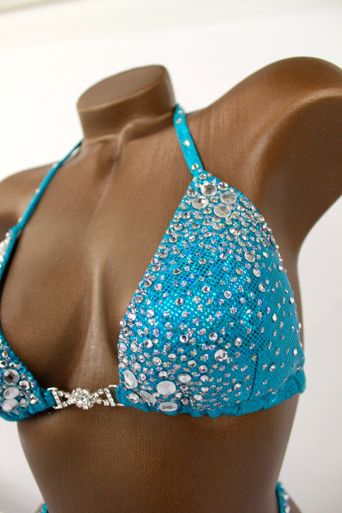 Teal Hologram Spandex Two-Piece Figure Competition Suit